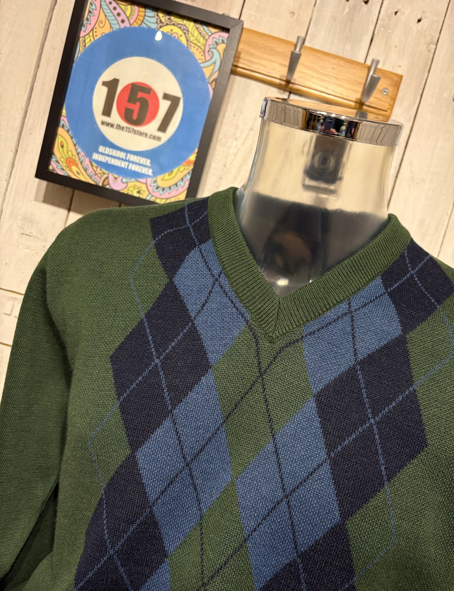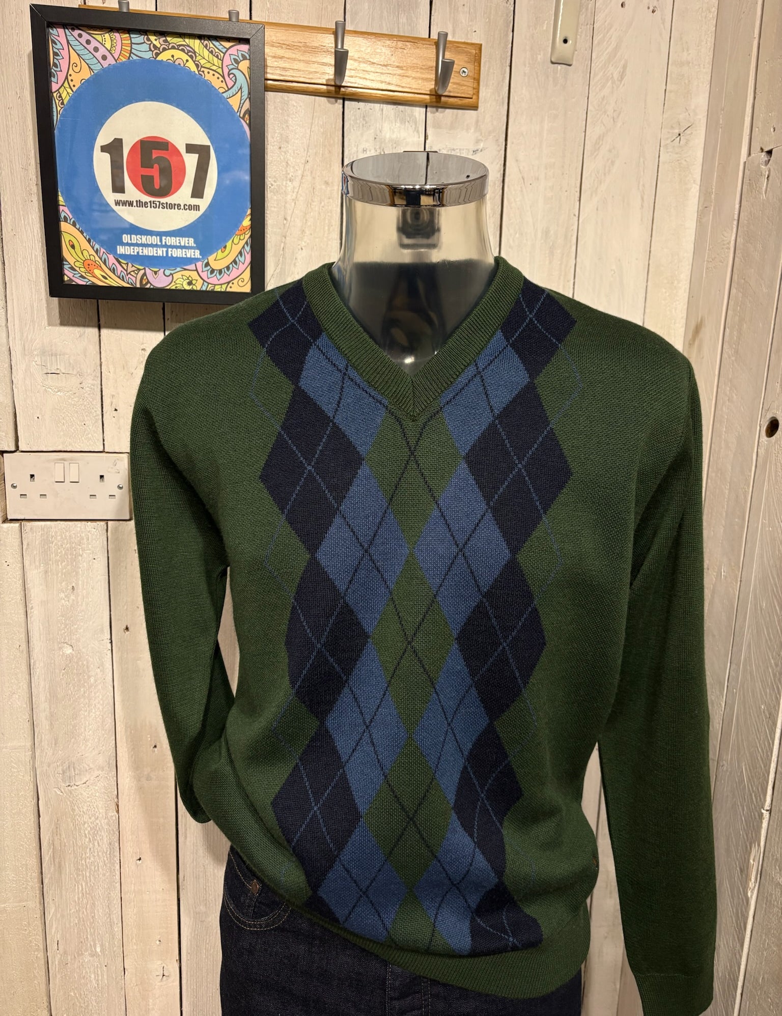 Gabicci Classic Reg Fit Argyle V-Neck Knit - Forest