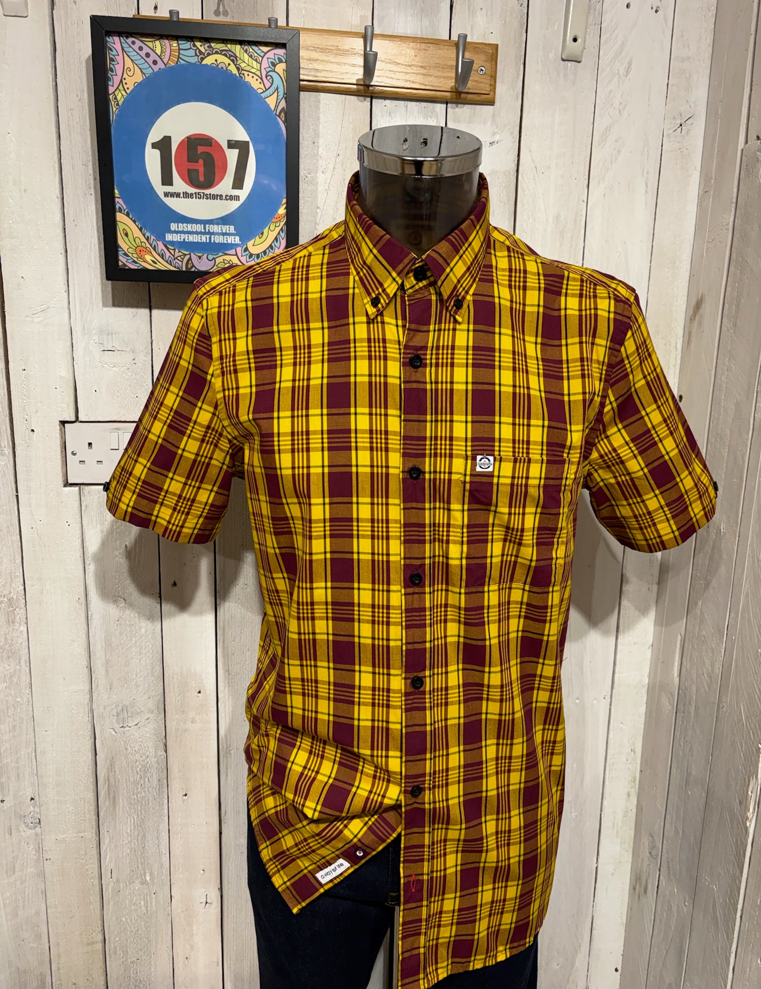 Lambretta Short Sleeve Check Shirt - Burgundy / Gold