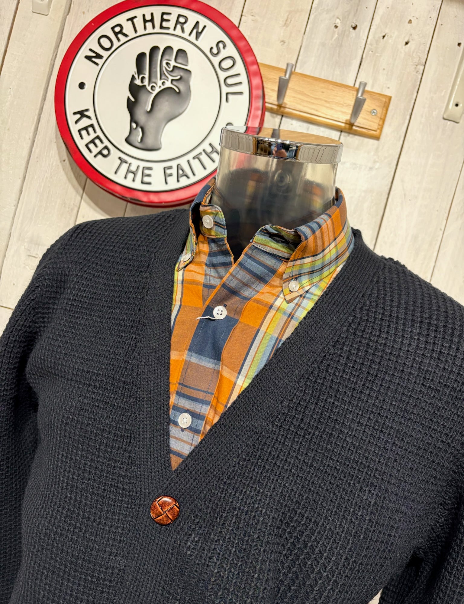 Trojan Quarter Zip Jacquard Trim Jumper - Navy