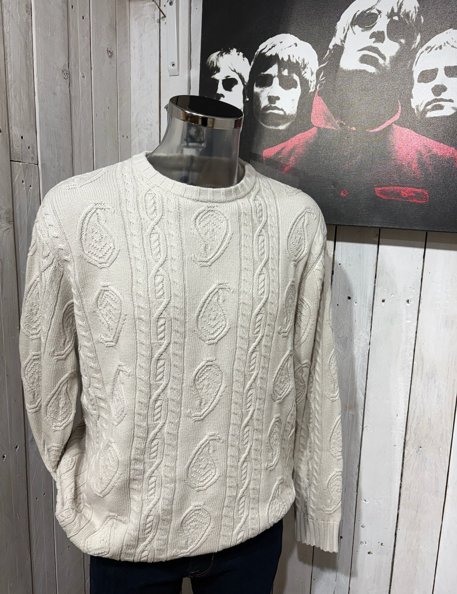 Pretty Green Paisley Cable Knit Jumper - Stone