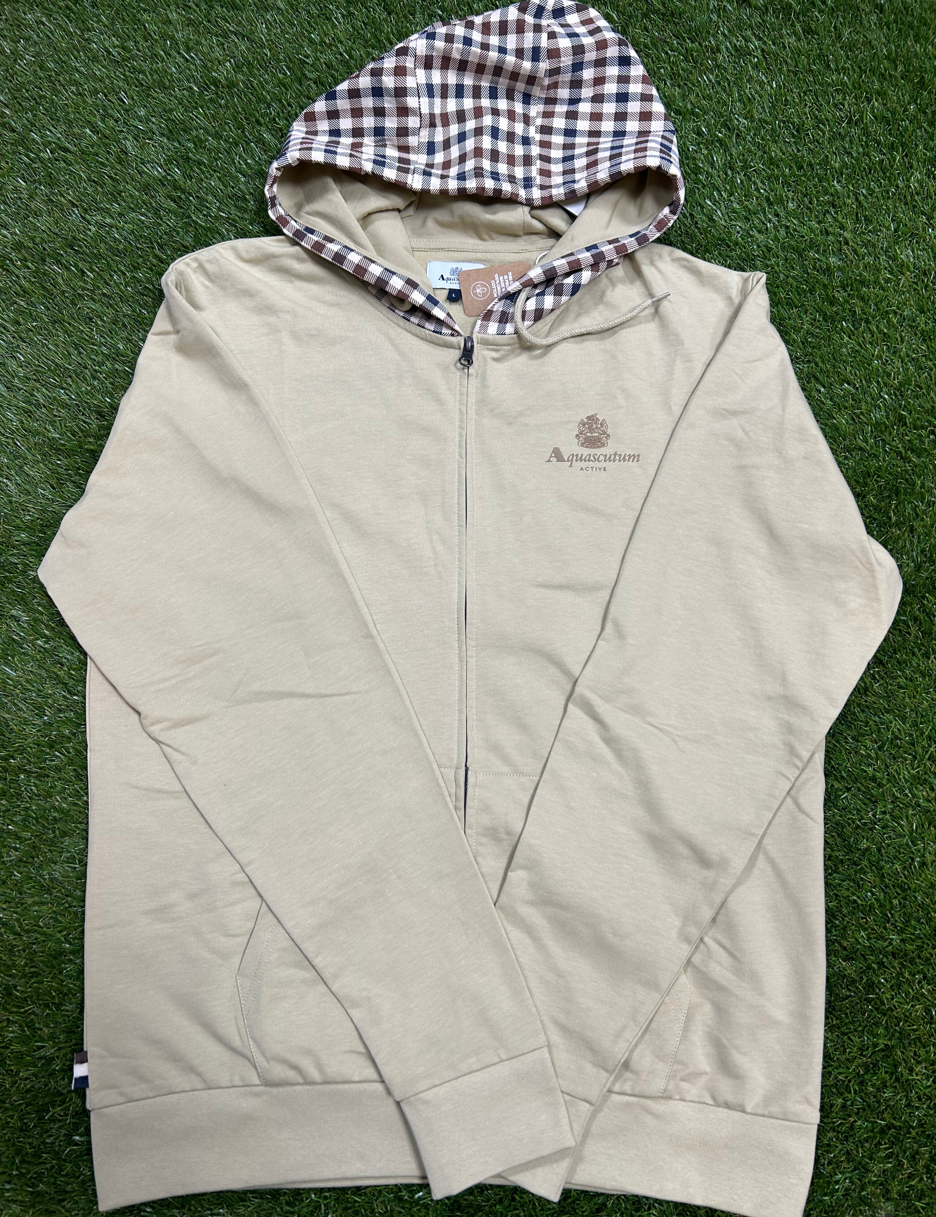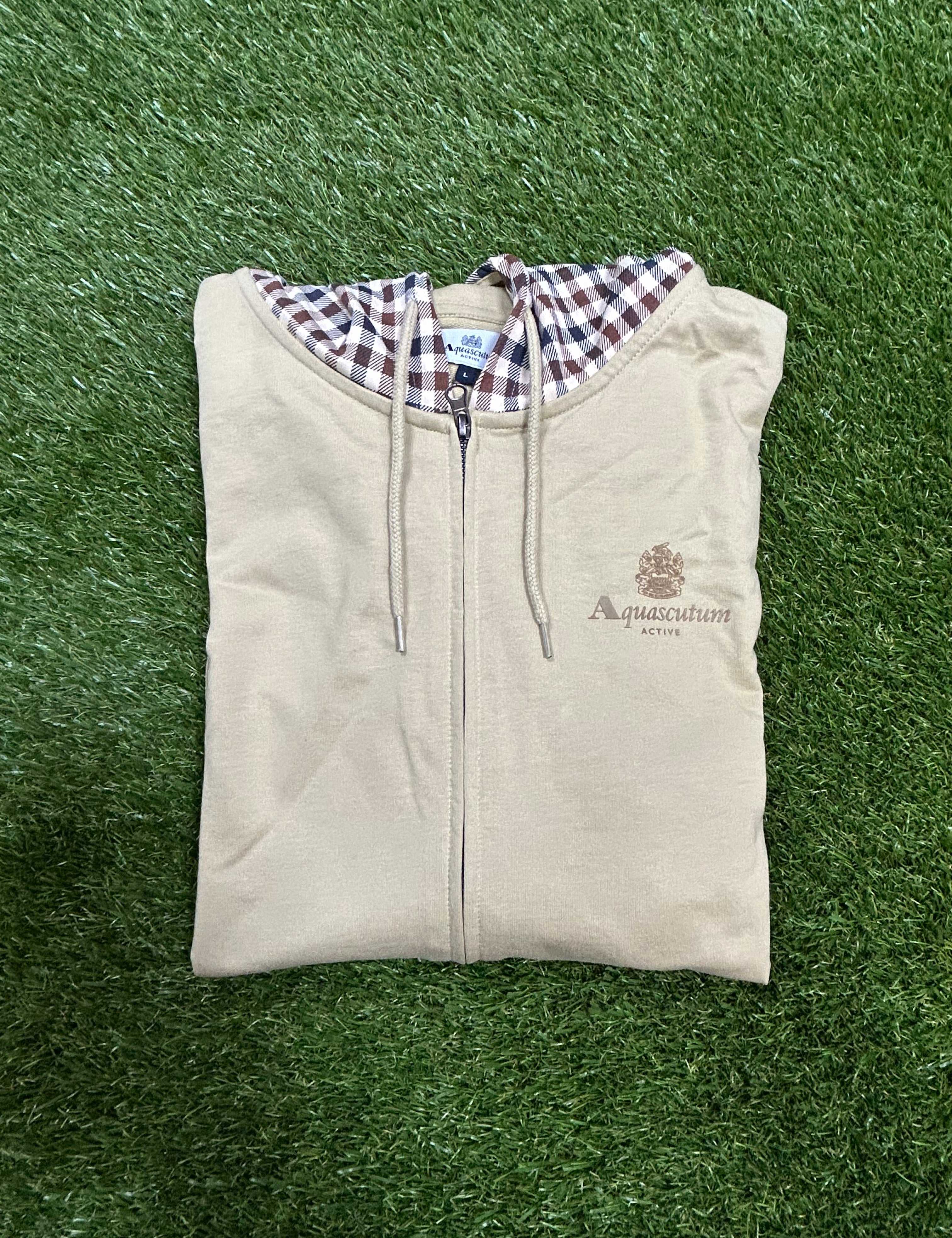 Aquascutum Small Logo Club Check Hoodie - Beige - Sale Vault