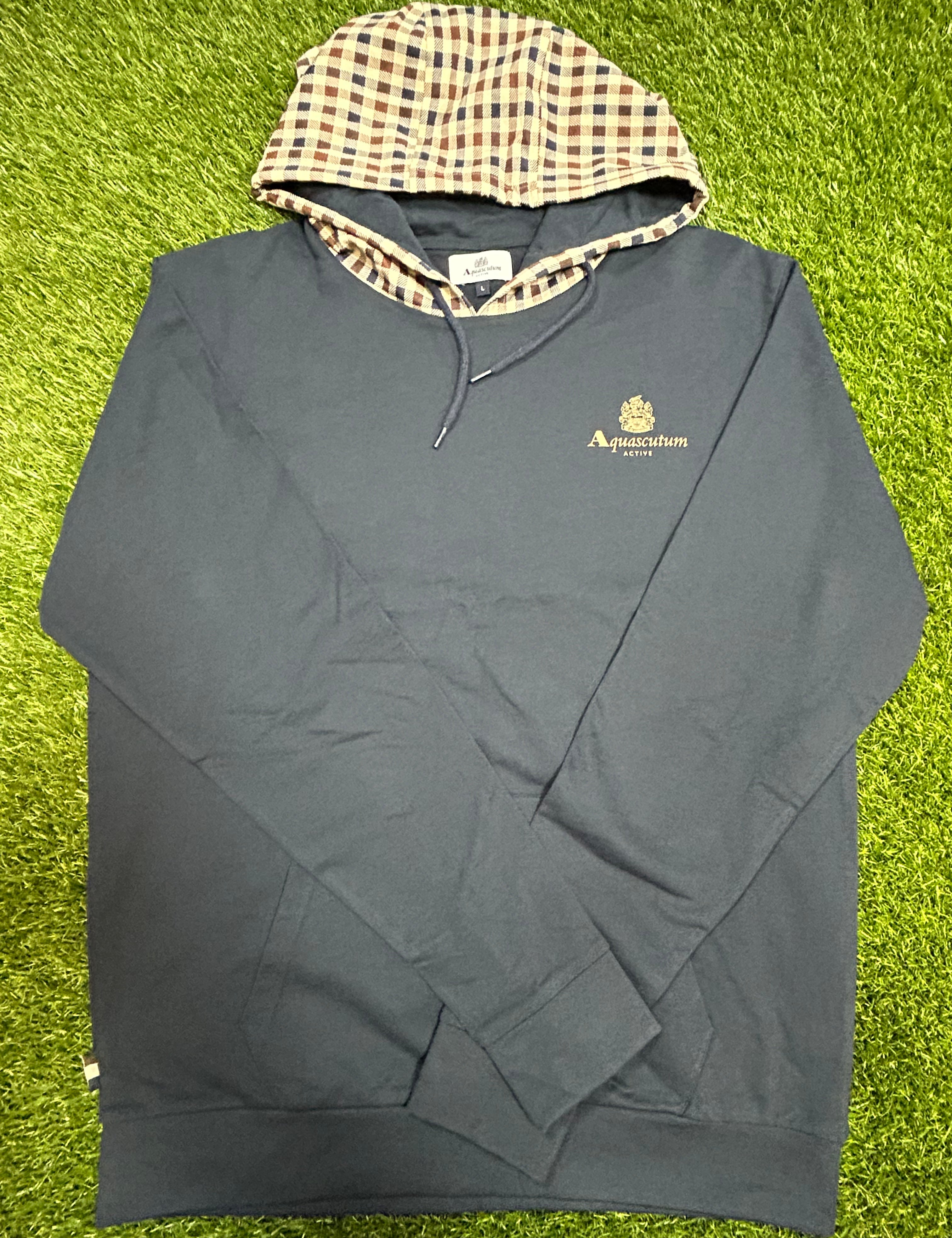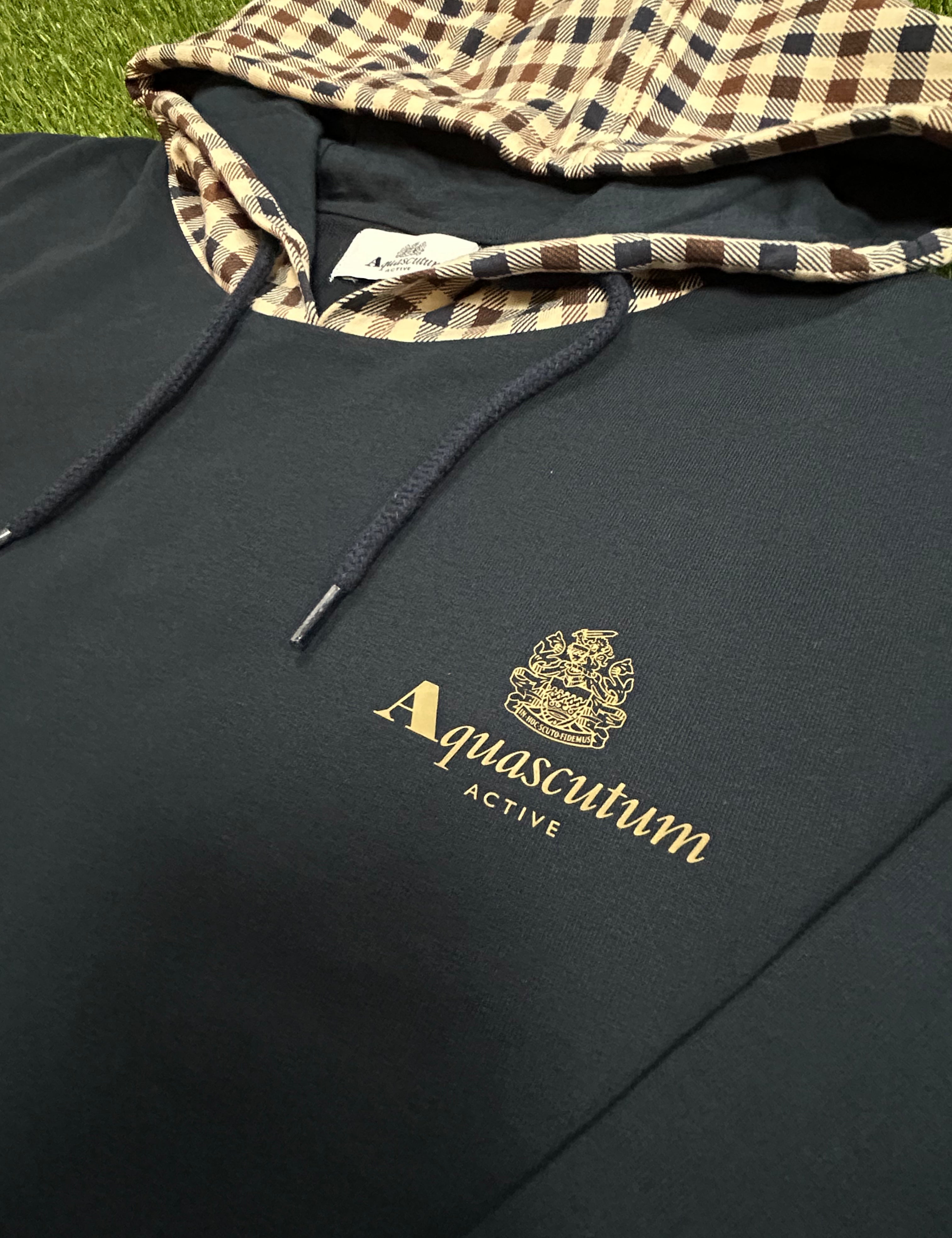 Aquascutum Club Check Hoodie - Navy - Sale Vault