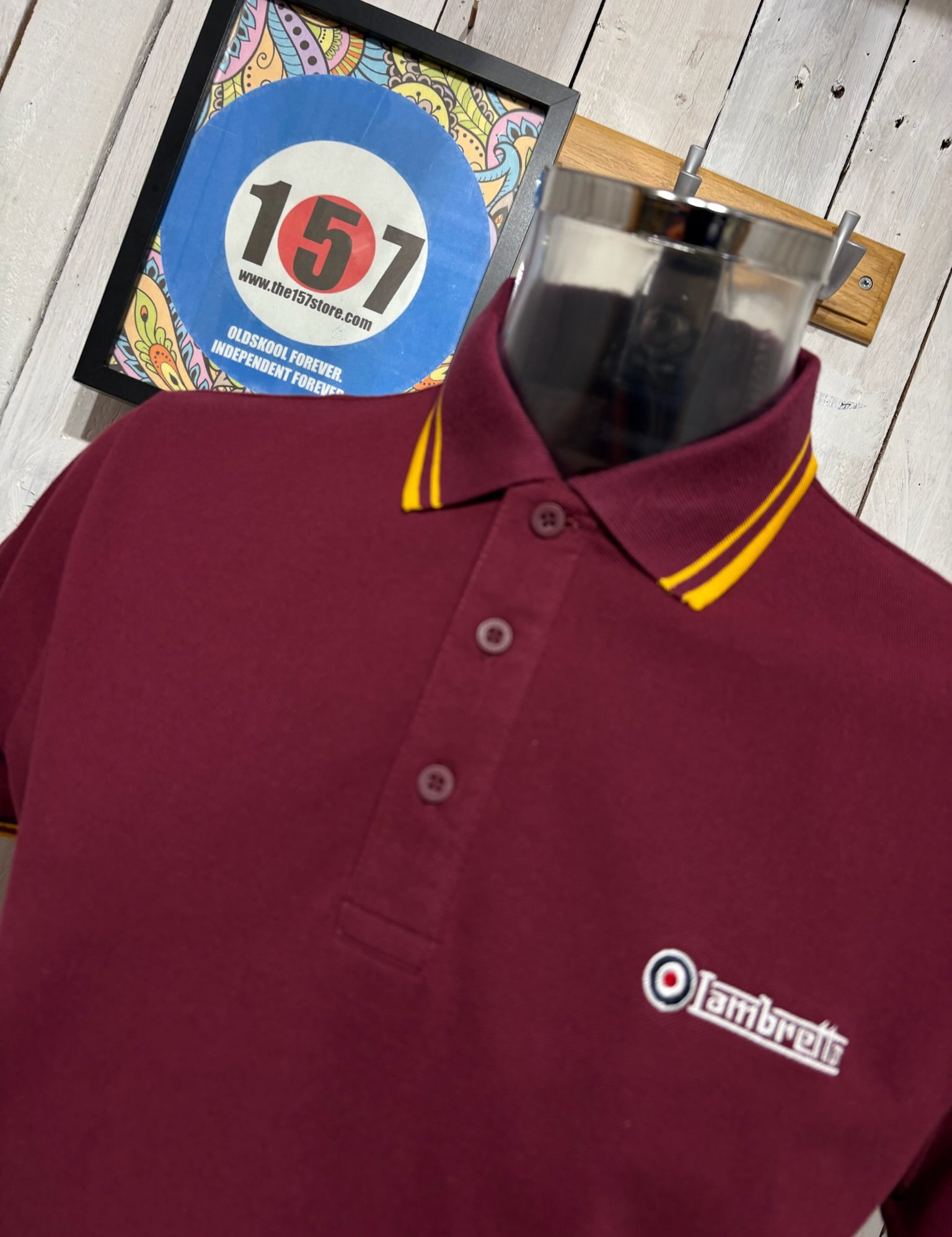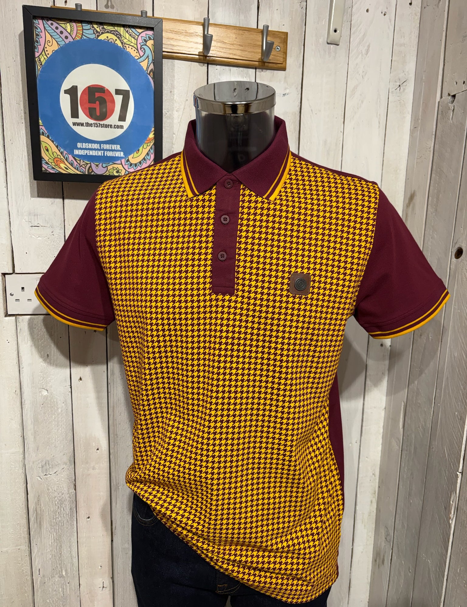 Lambretta Houndstooth Polo - Burgundy / Gold