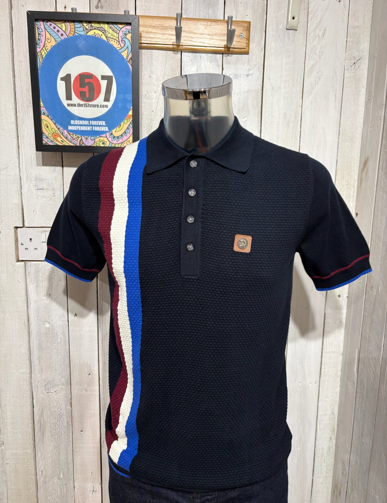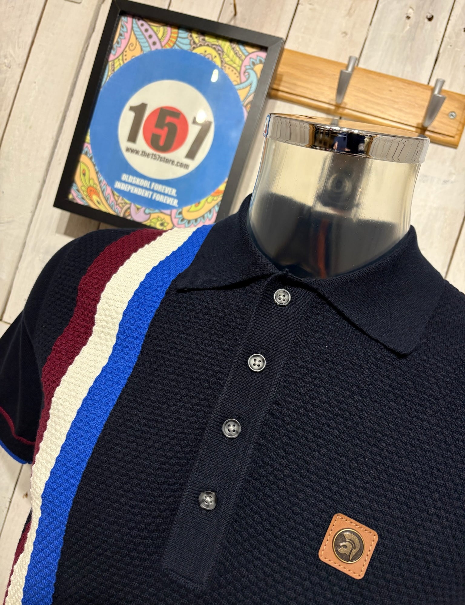 Trojan Waffle Racing Stripe Knit Polo - Navy