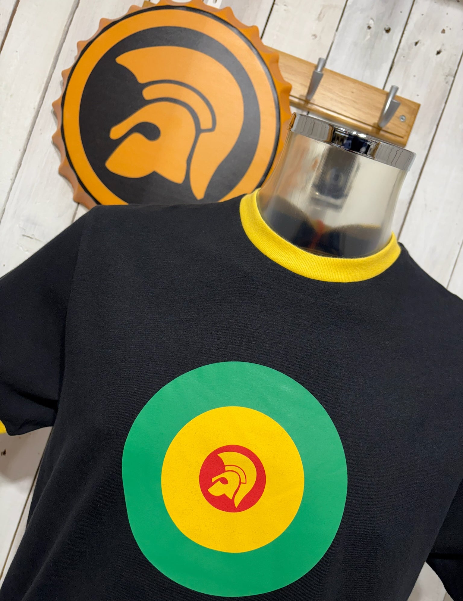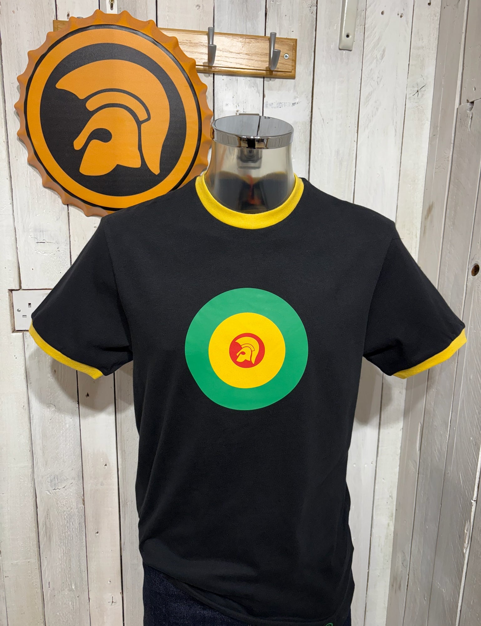 Trojan Pique Shoulder Stripe Tee - Black / Jamaica