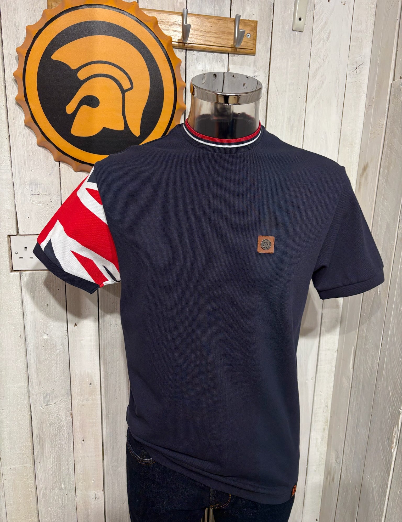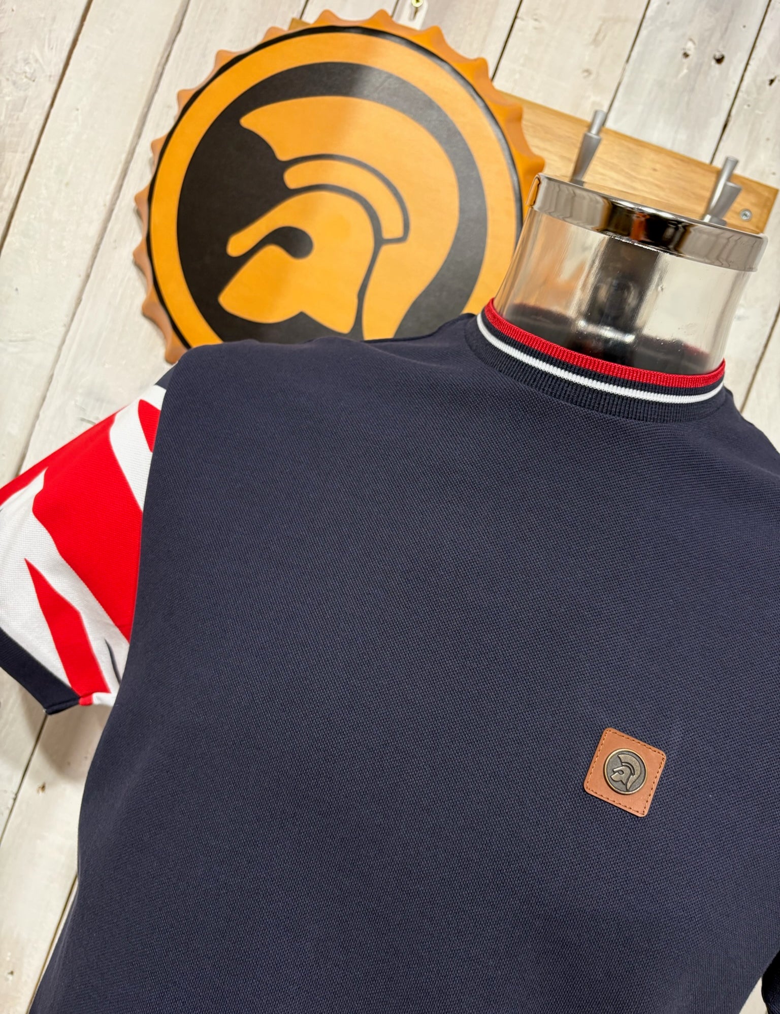 Trojan Ringer Tee - Union Jack Chest Emblem - Navy