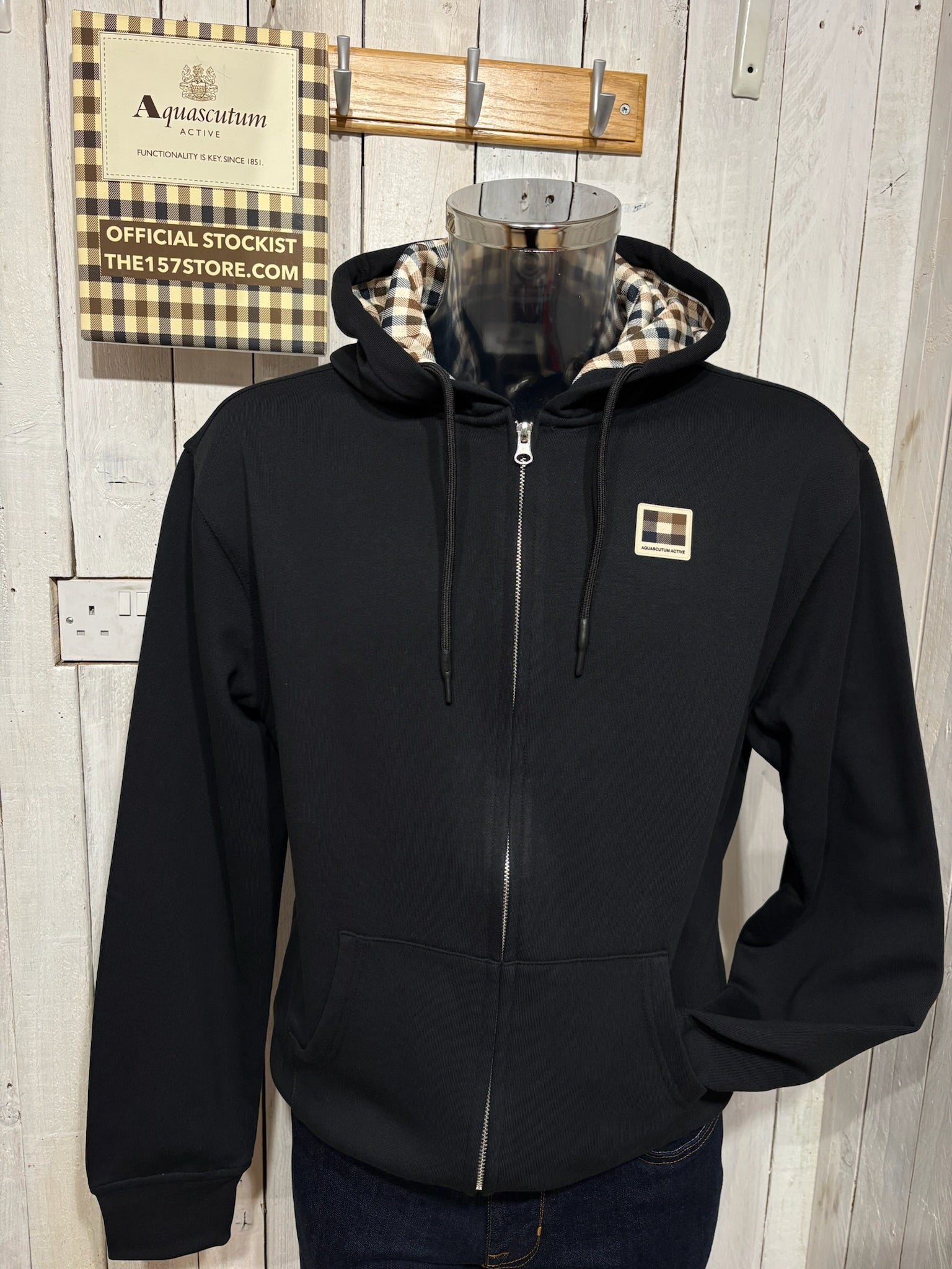 Aquascutum 2026 Full Zip Badge Hoodie - Black