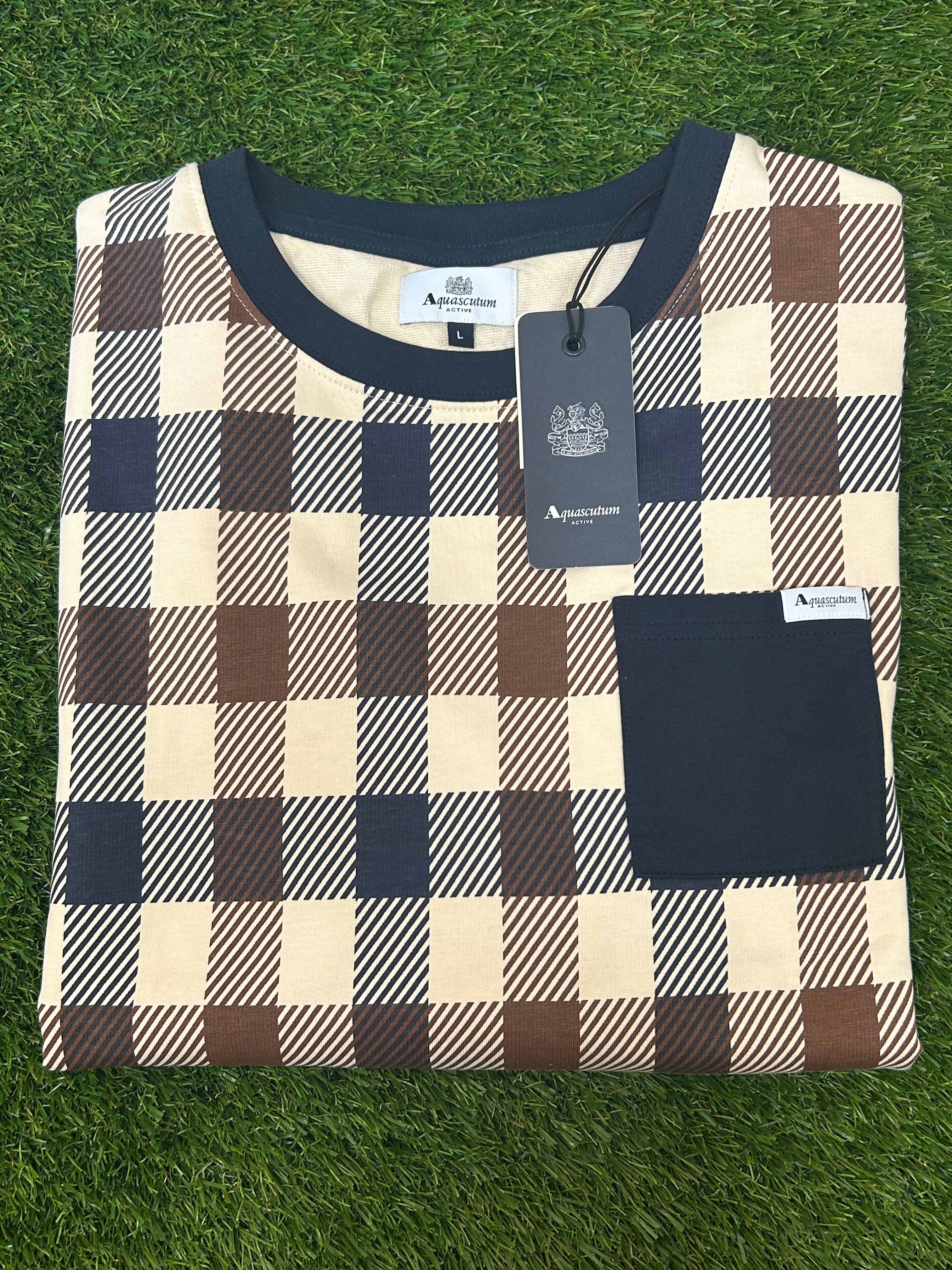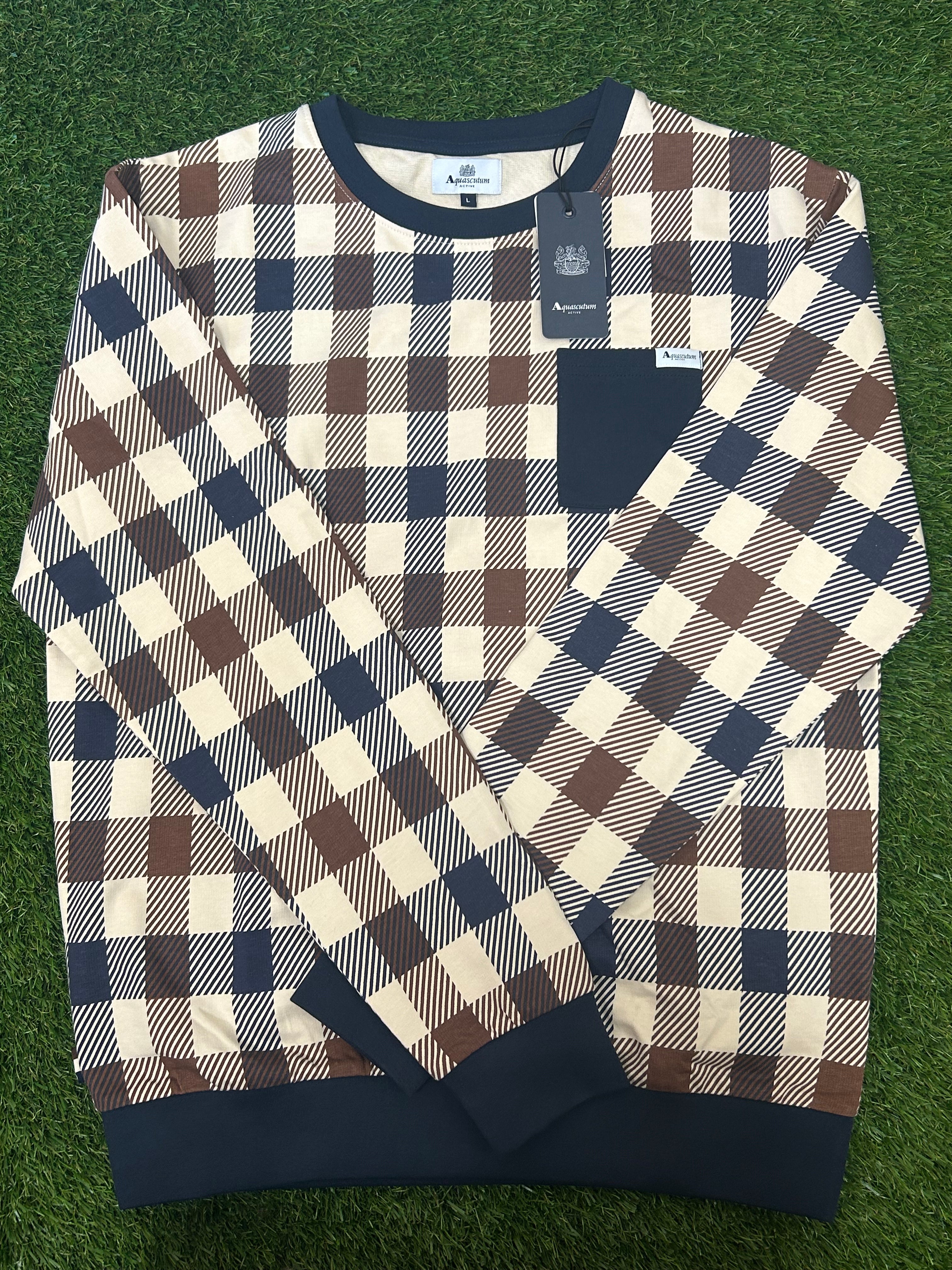 Embrace bold style with the Aquascutum Navy Crewneck Jumper, showcasing a vibrant macro check pattern all over. This large-sized sweater offers timeless comfort and sophistication. With only one available, don’t miss this exclusive deal—grab it now at a discount!