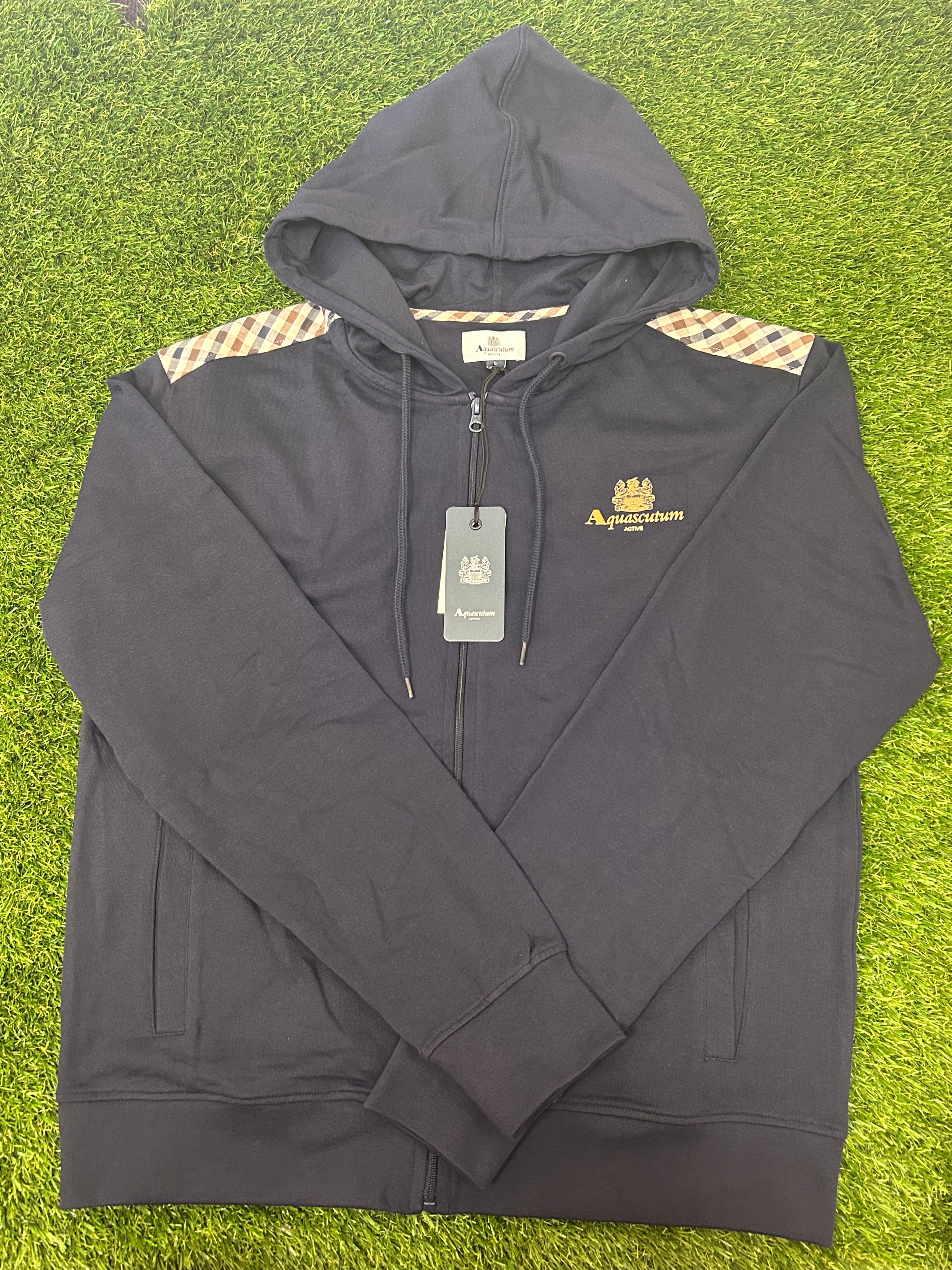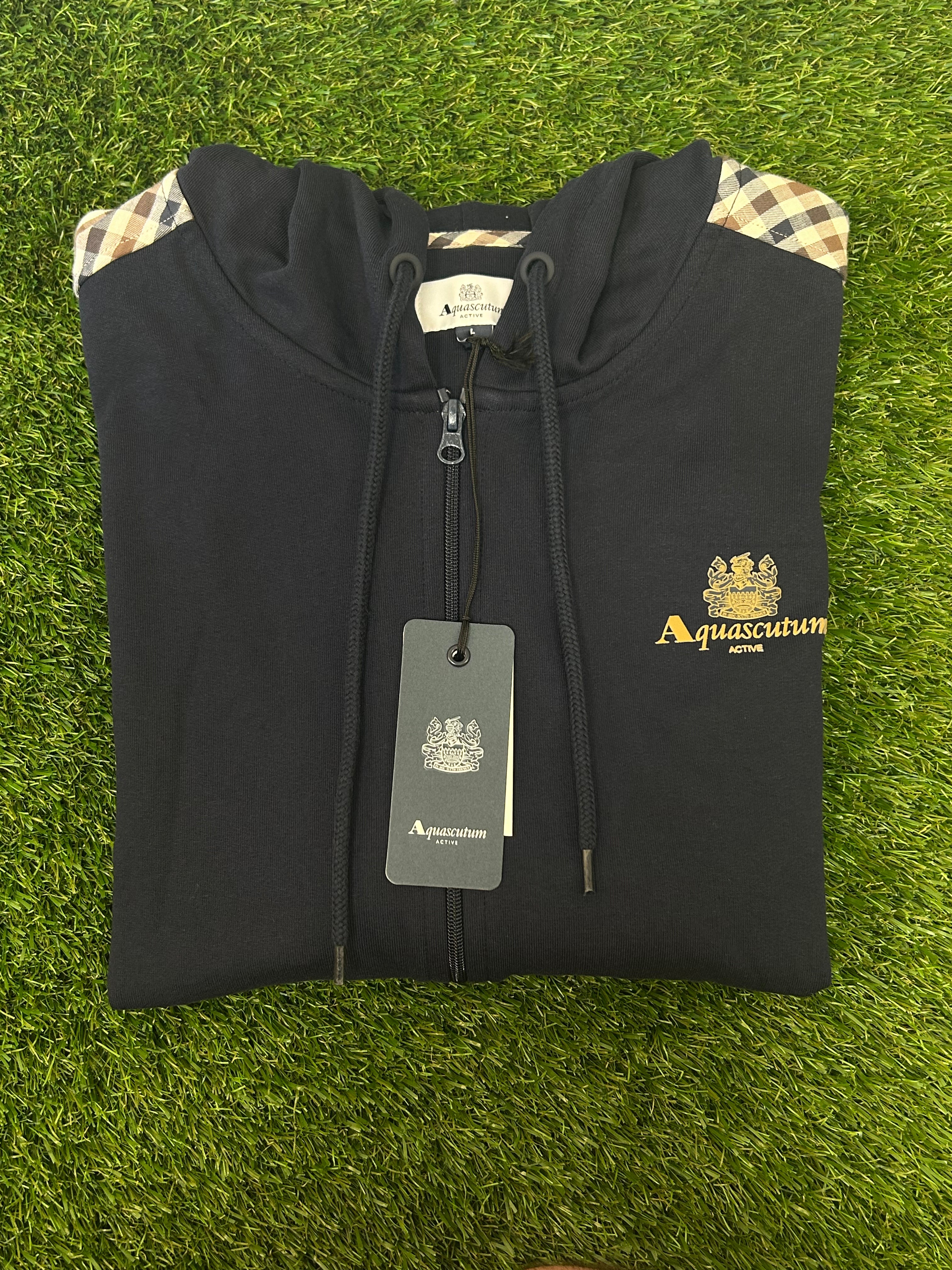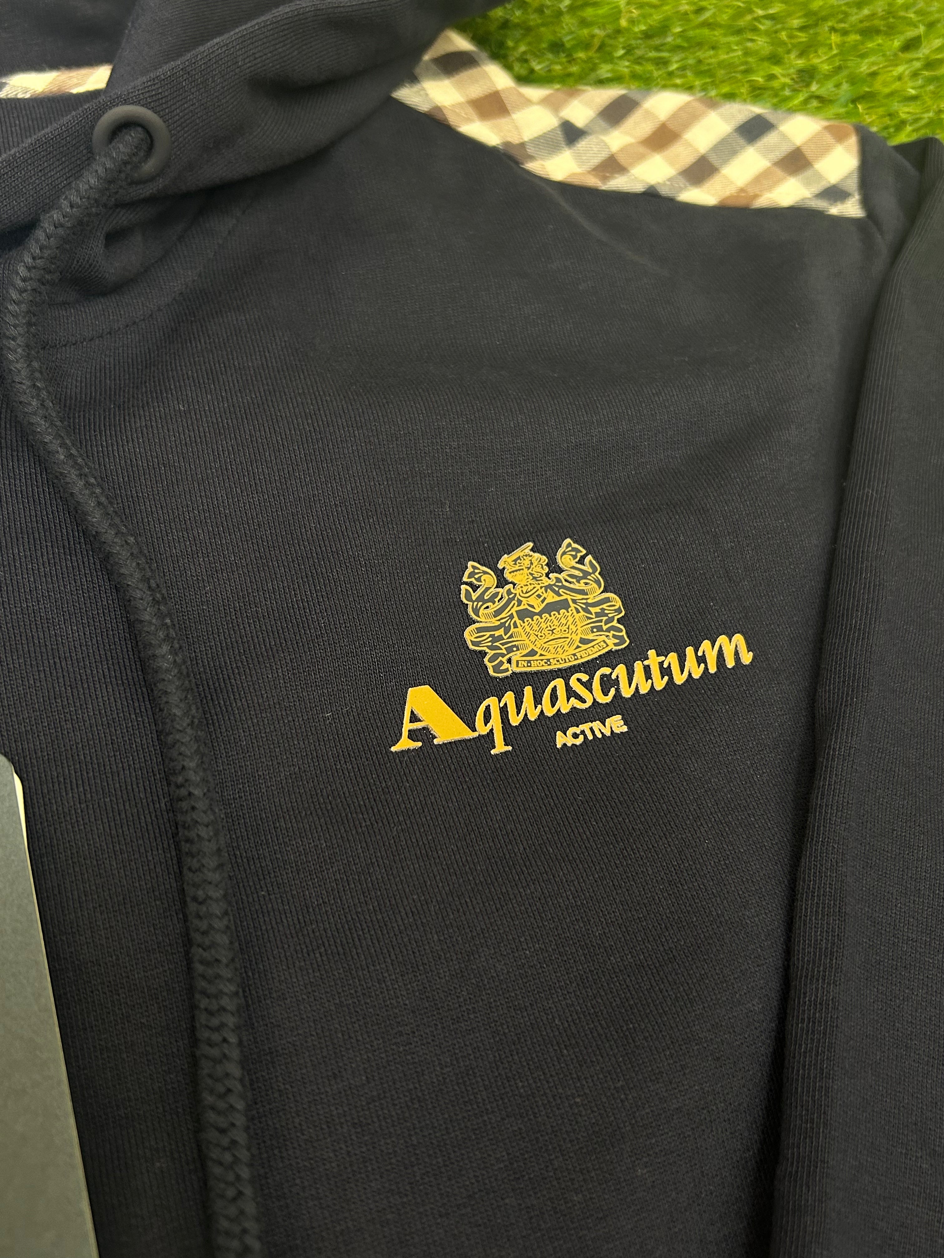 Aquascutum Small logo Hoodie Club Check Details - Navy - Sale Vault