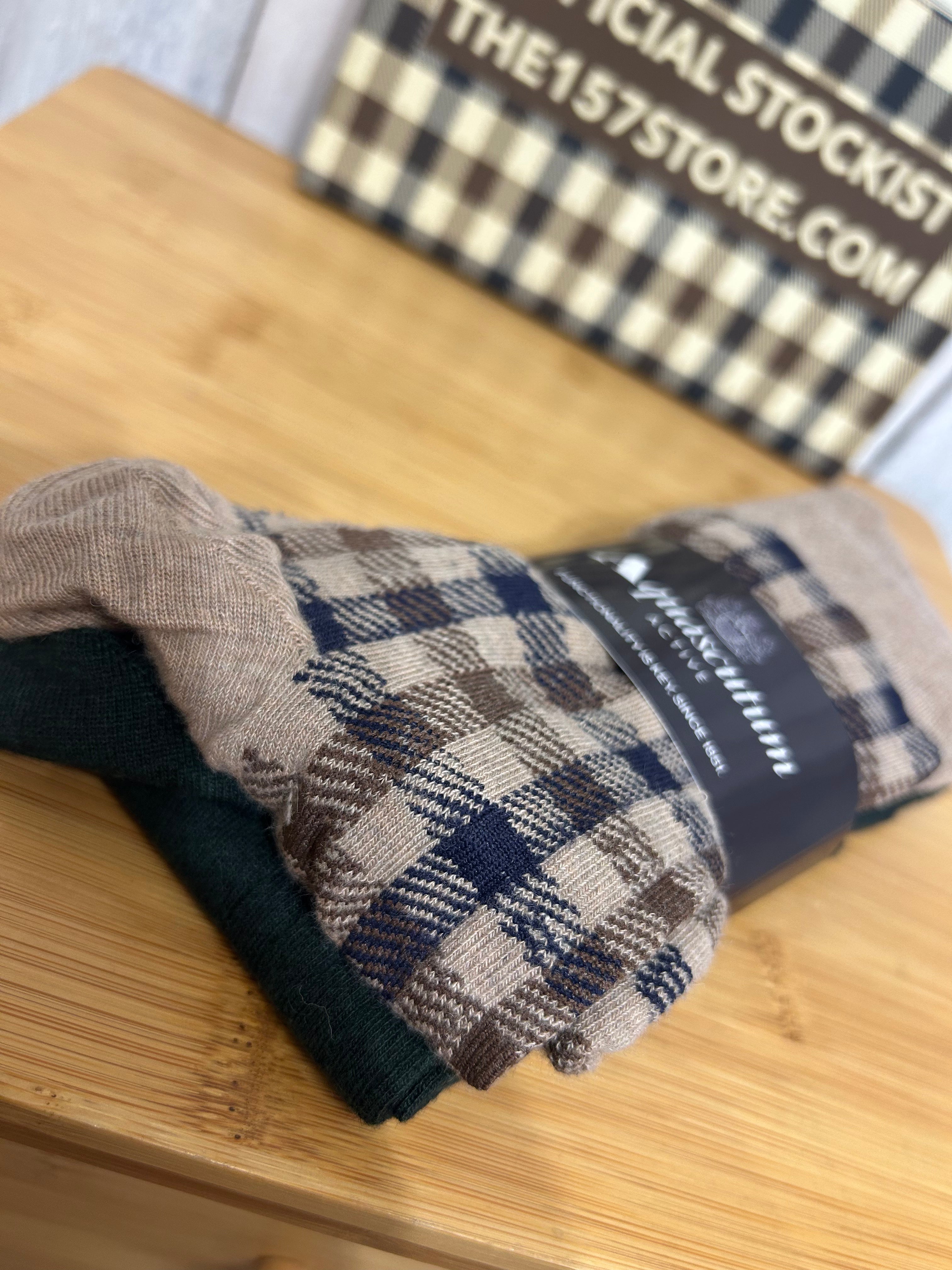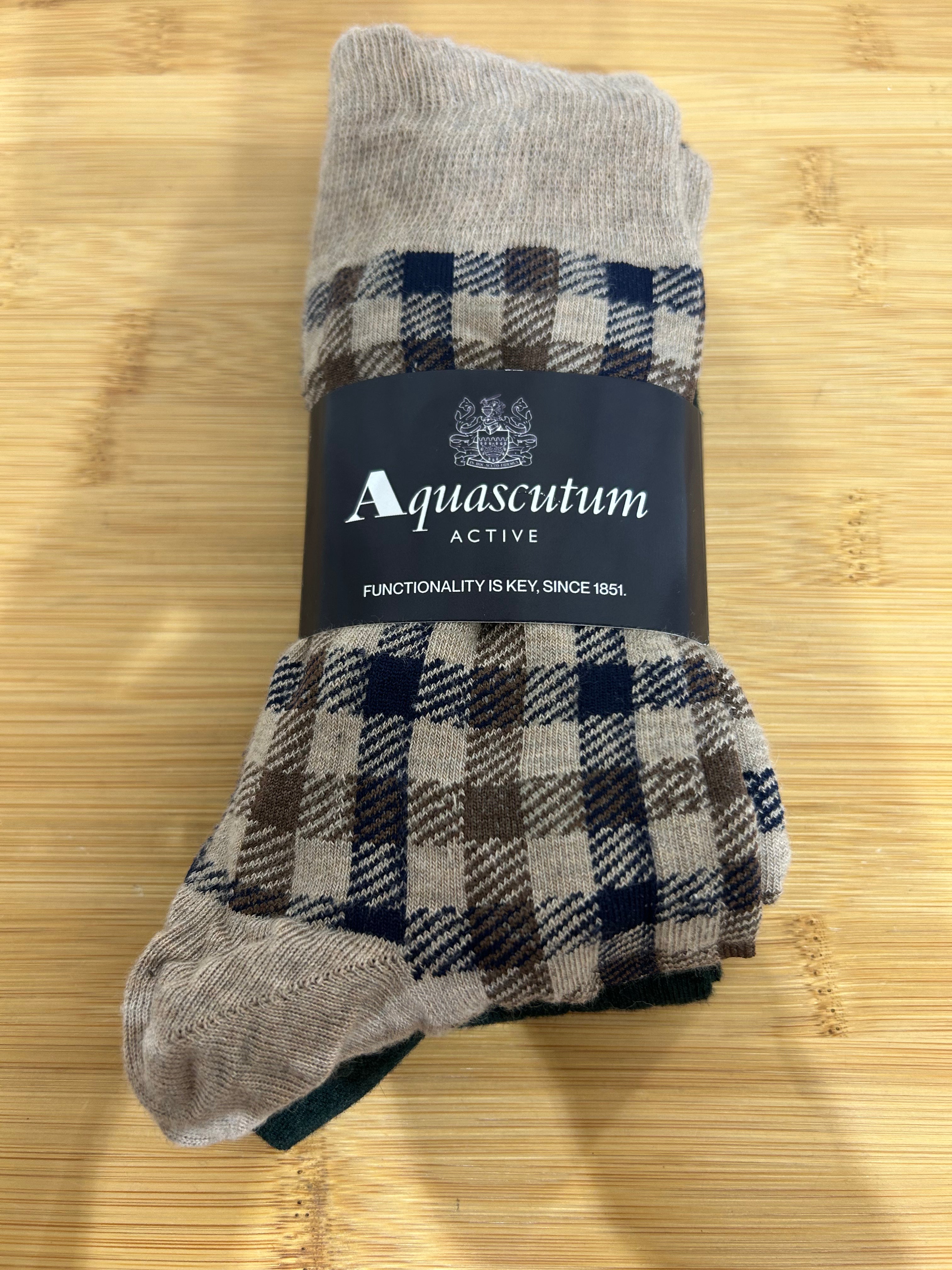 Elevate your style with this Aquascutum 2-Pair Sock Set. Crafted from premium materials, it includes one club check pair and one in hunter green. Designed for comfort and durability, these socks offer a perfect fit and subtle sophistication. Shop now on our Shopify store for timeless elegance!
