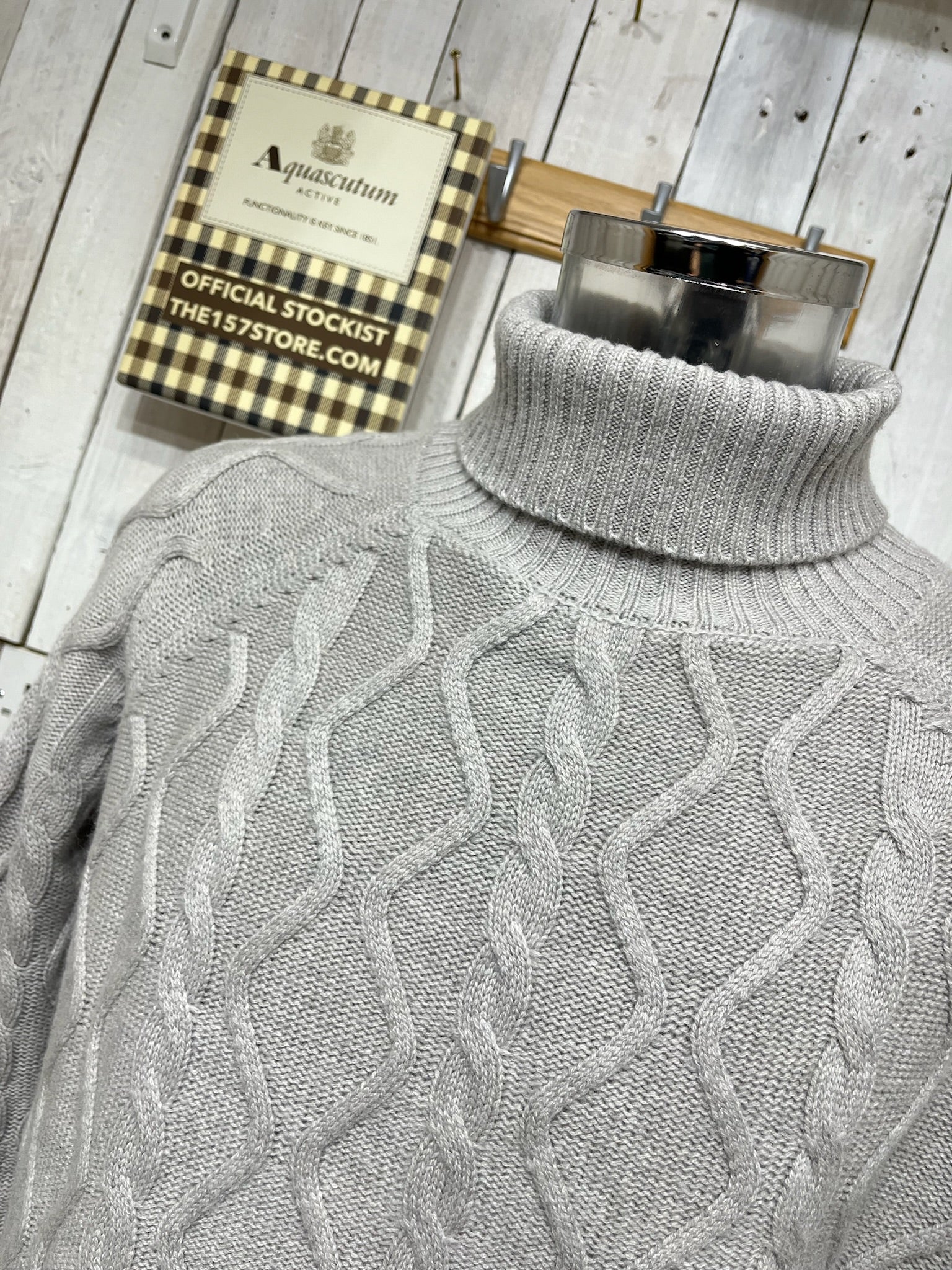 Aquascutum Vault Cable Knit Roll Neck Jumper - Grey
