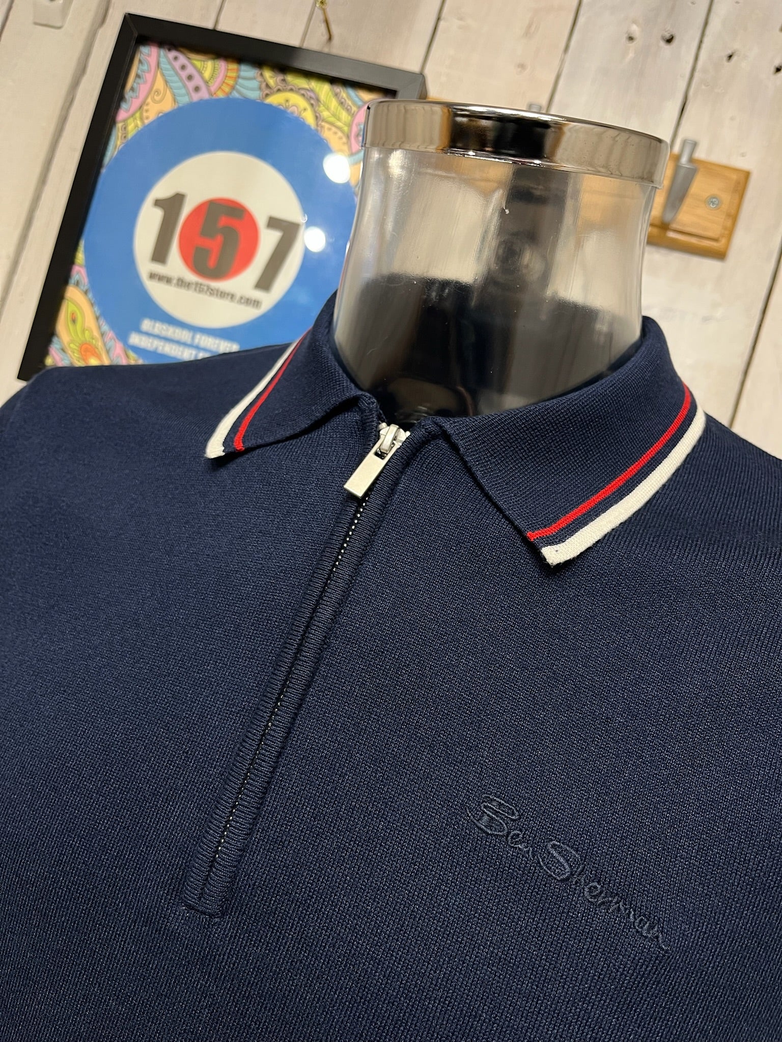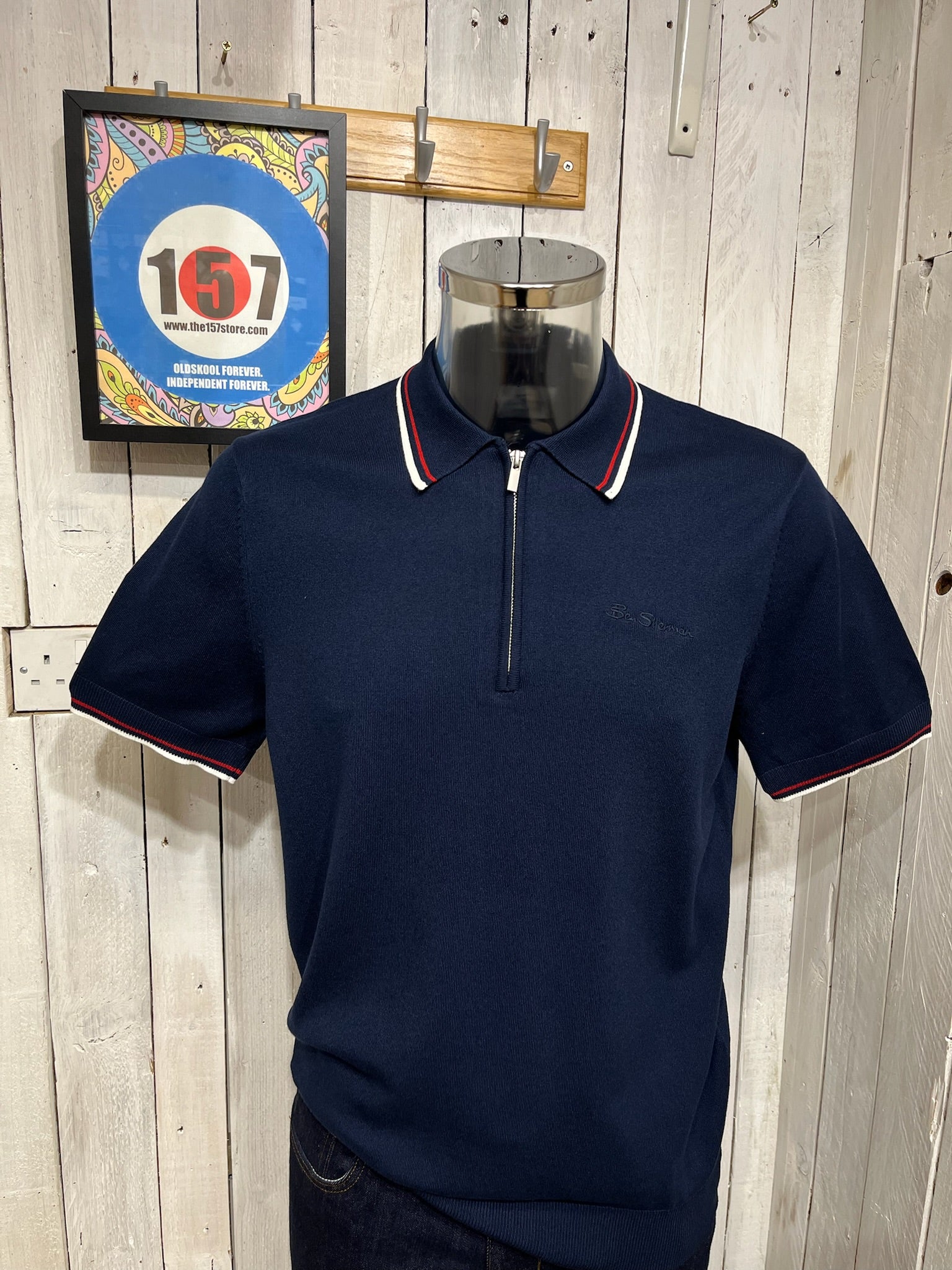 Ben Sherman Mod Zip Tipped Polo - Dark Navy