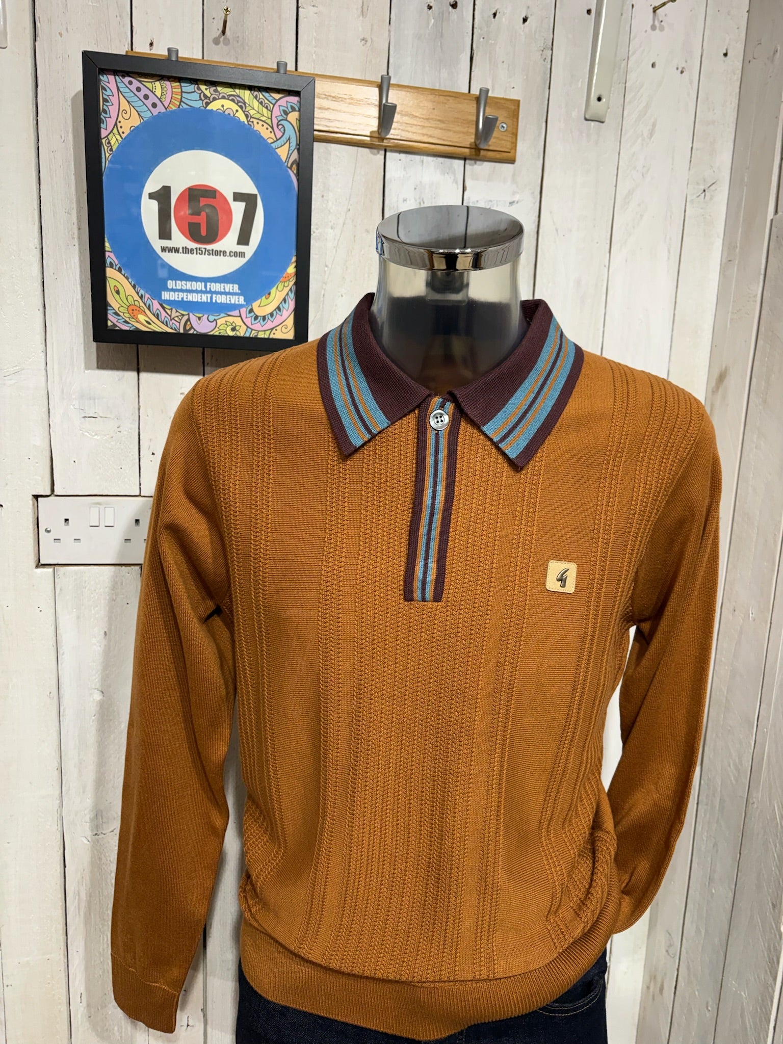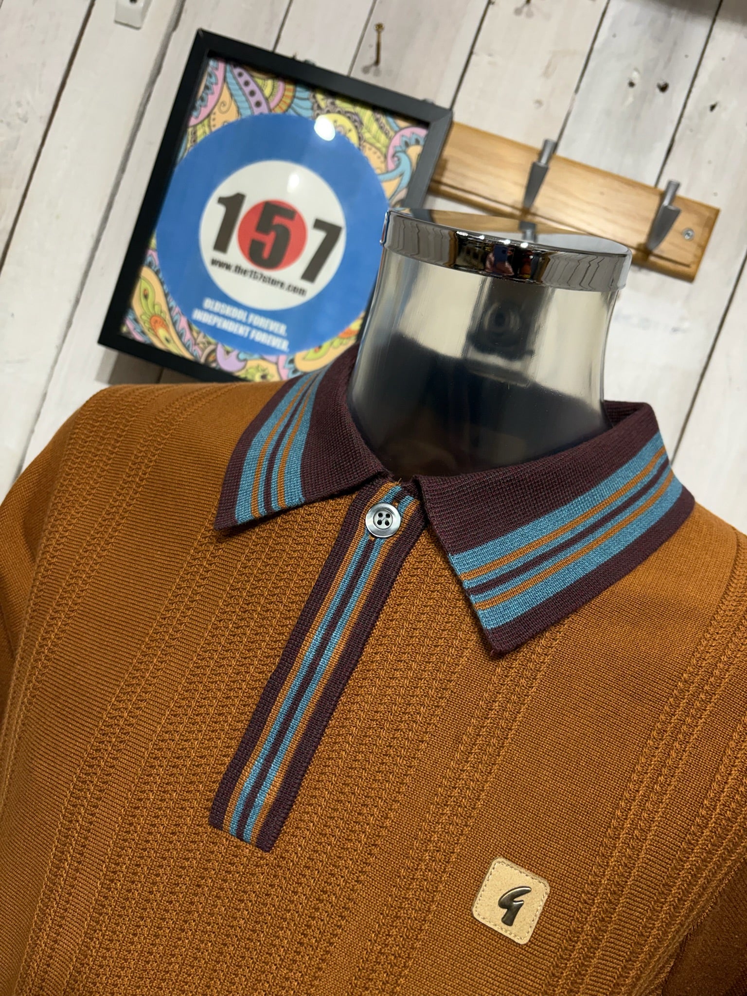 Gabicci Vintage Dean Tipped Knit Polo - Walnut
