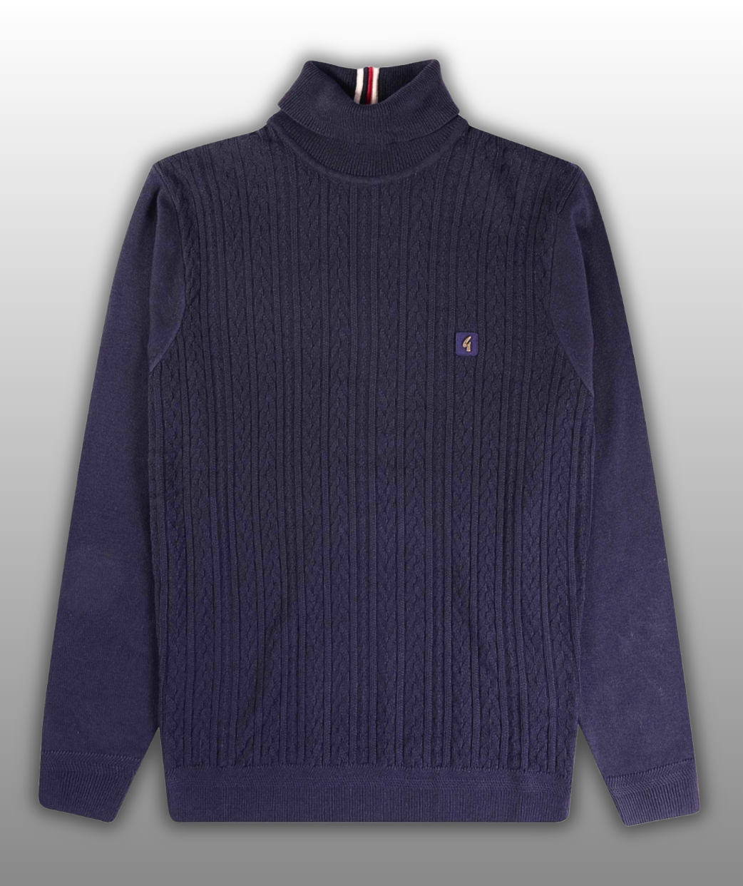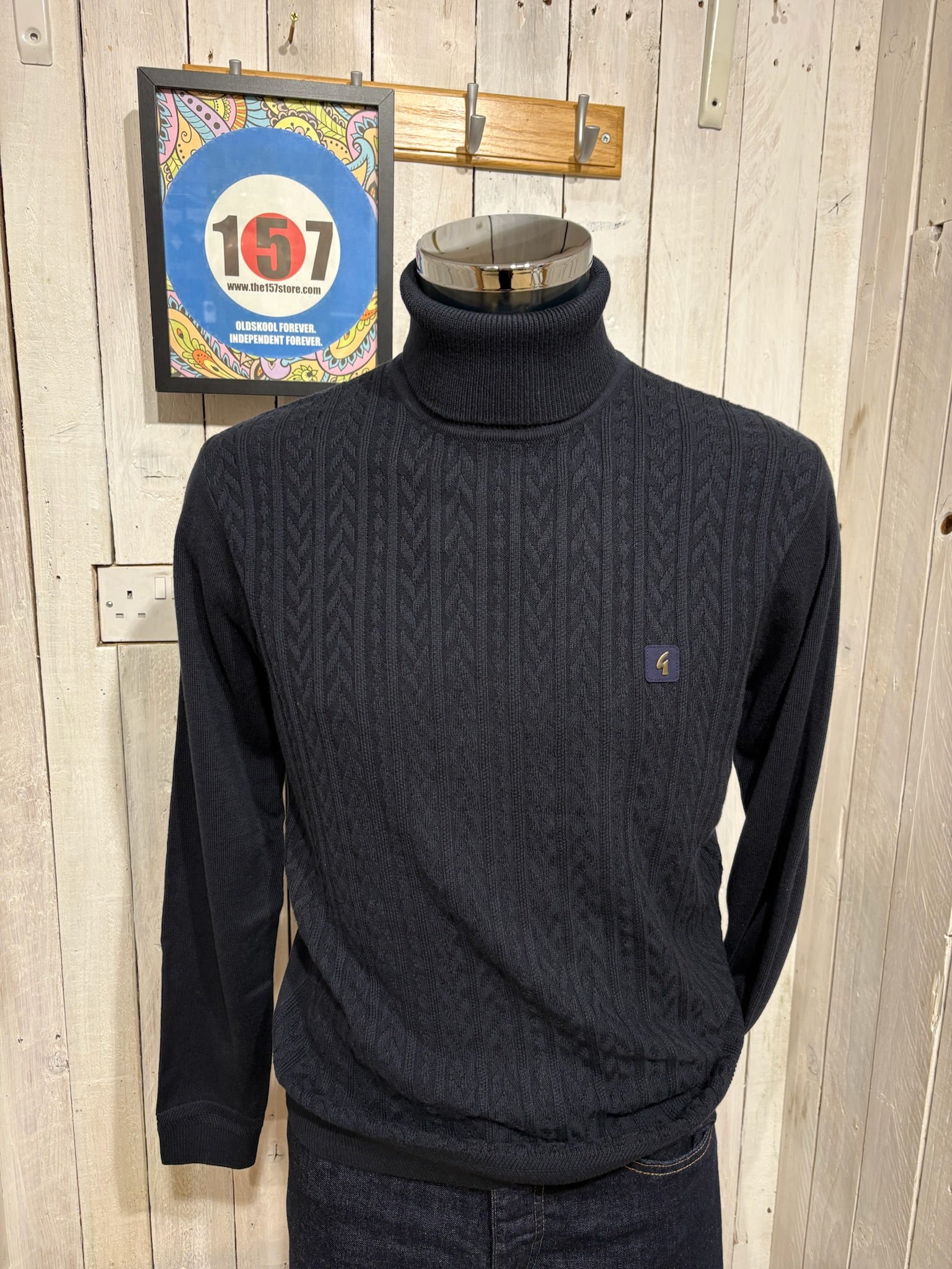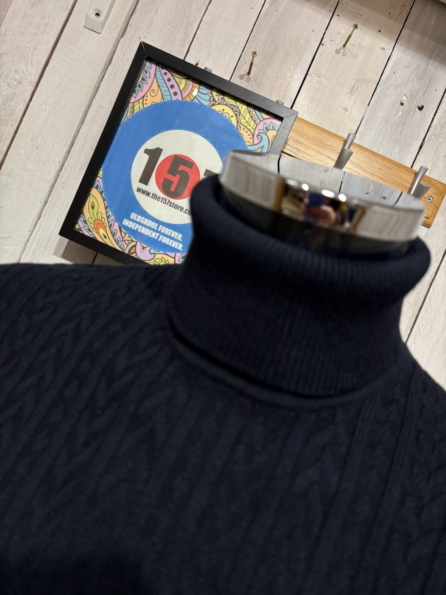 Gabicci Vintage Leonardo Roll Neck Knit - Navy (Original UNION Red Trim)