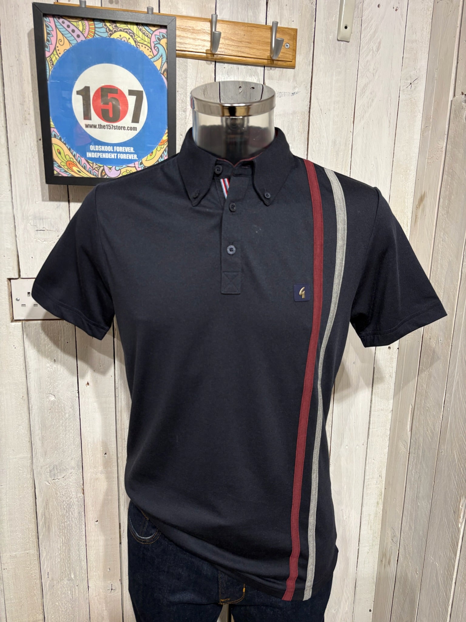 Gabicci Vintage Paddy Race Stripe Polo - NEW 2026 - Navy