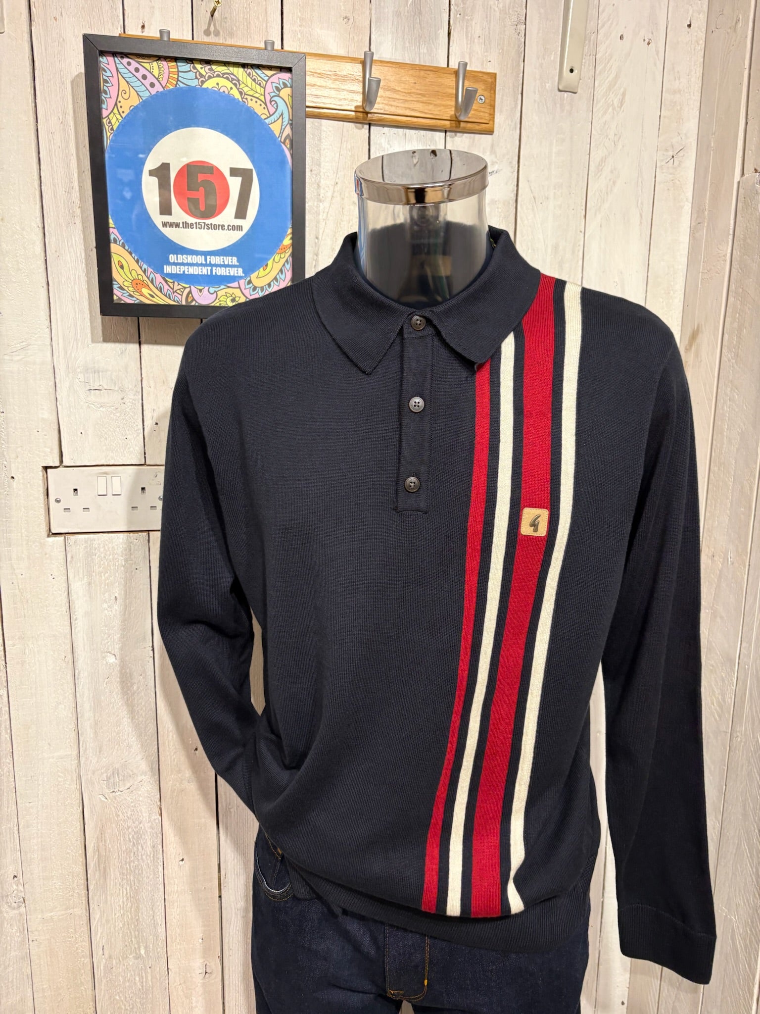 Gabicci Vintage Soda Race Stripe Knit - Navy