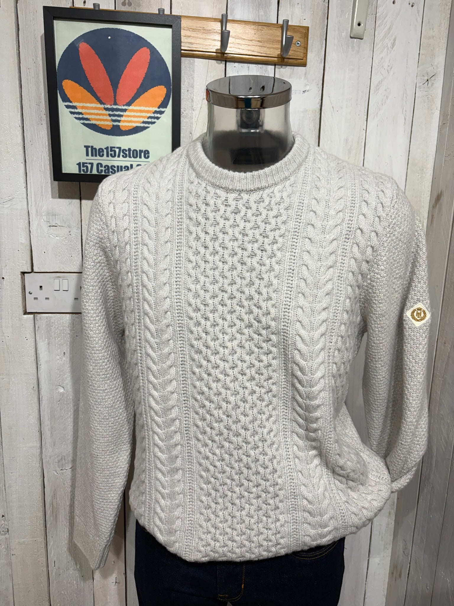 The Abersoch Jumper in Off White Melange blends traditional cable knit style with contemporary craftsmanship. Constructed from 80% wool and 20% polyamide, it’s finished in a 7-gauge knit featuring moss stitch and front-panel cabling for added texture and visual depth. This style includes set-in sleeves, a fully fashioned knit structure, and the signature Henri-Lloyd recycled diamond badge on the arm. Offering warmth and style in equal measure, it’s a versatile staple for layering through the colder seasons.