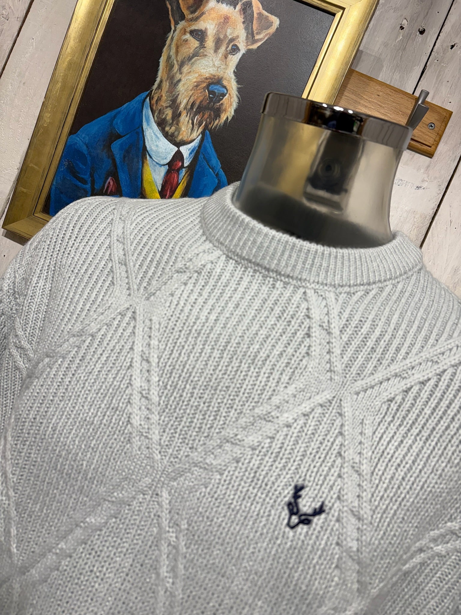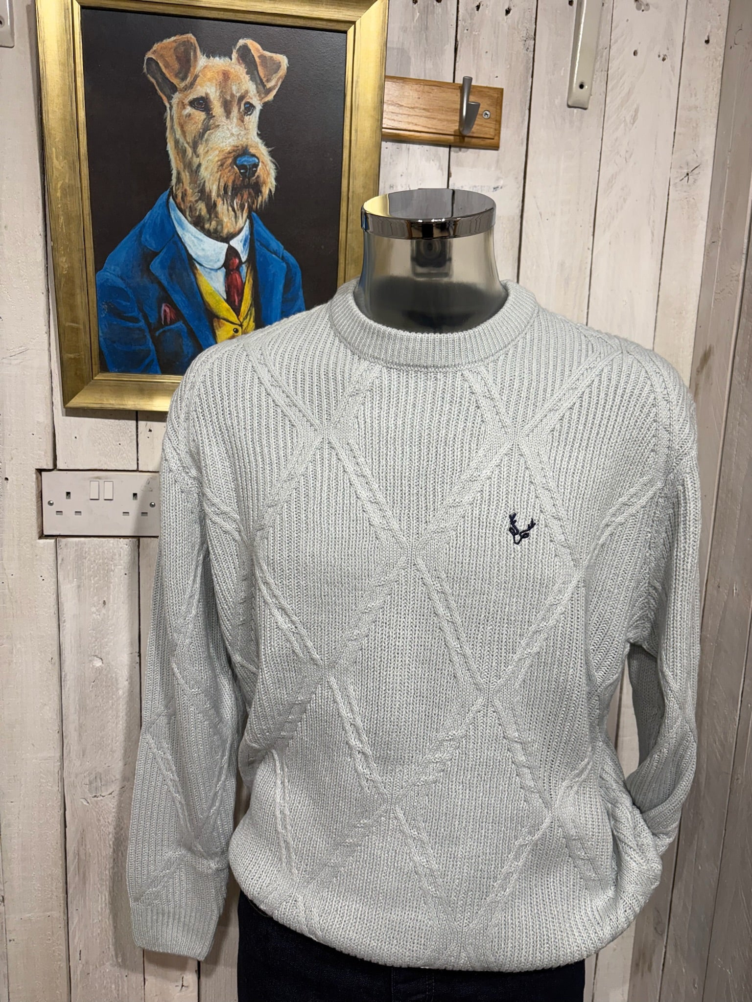 JJ Willis Stag Cable Jumper Soft Grey
