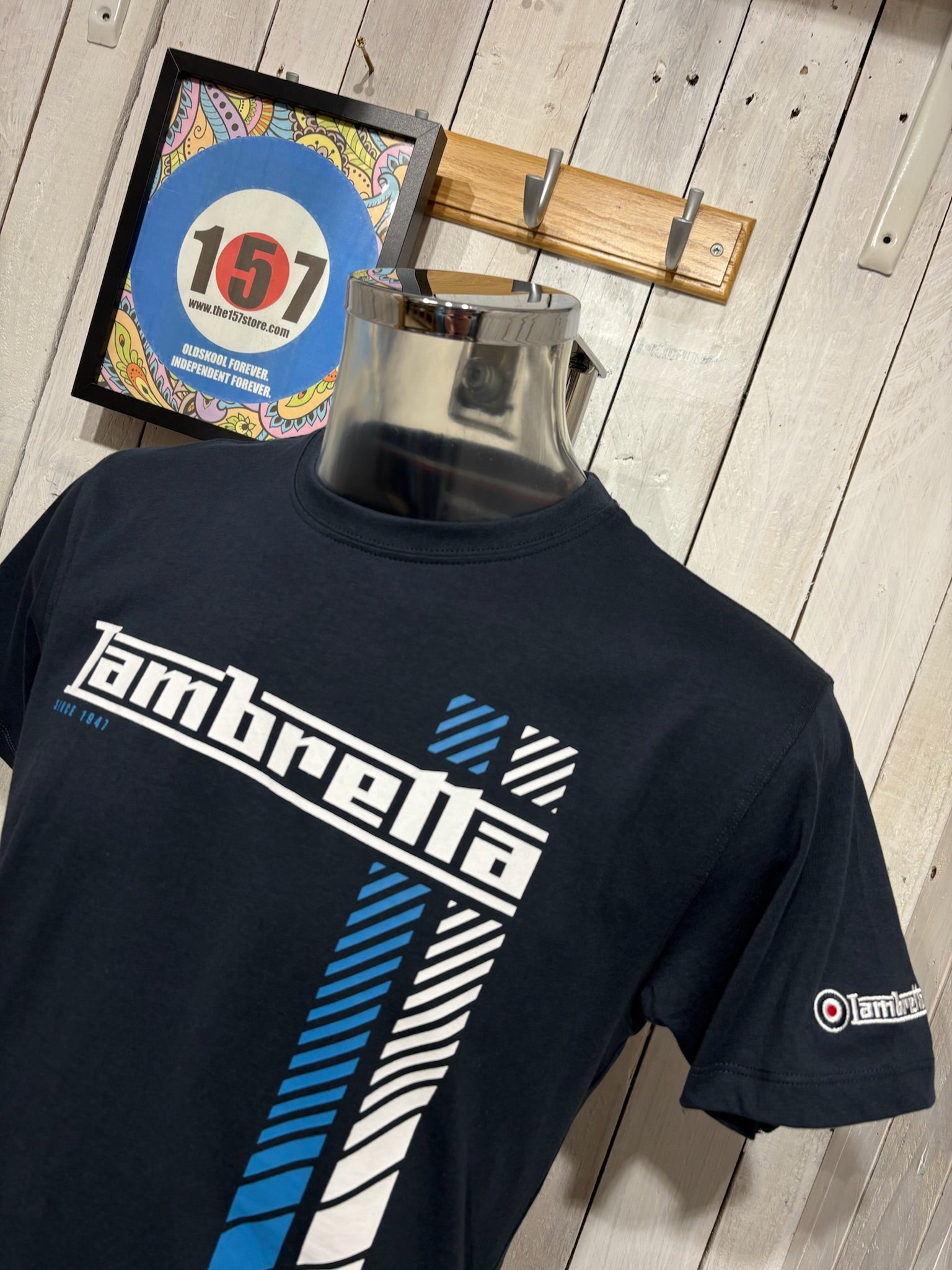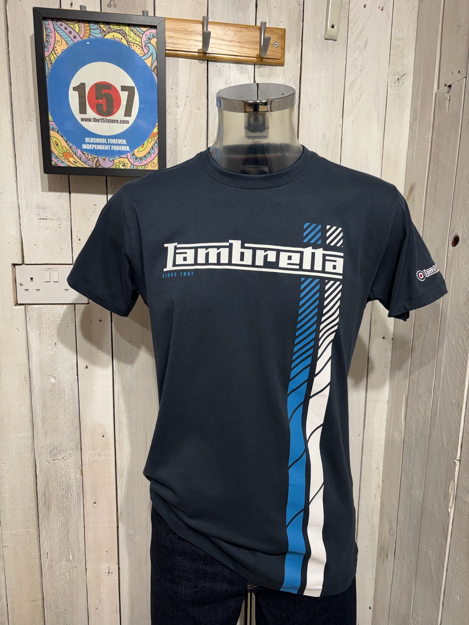 Lambretta Fade Racing Stripe Tee - Navy / Blue