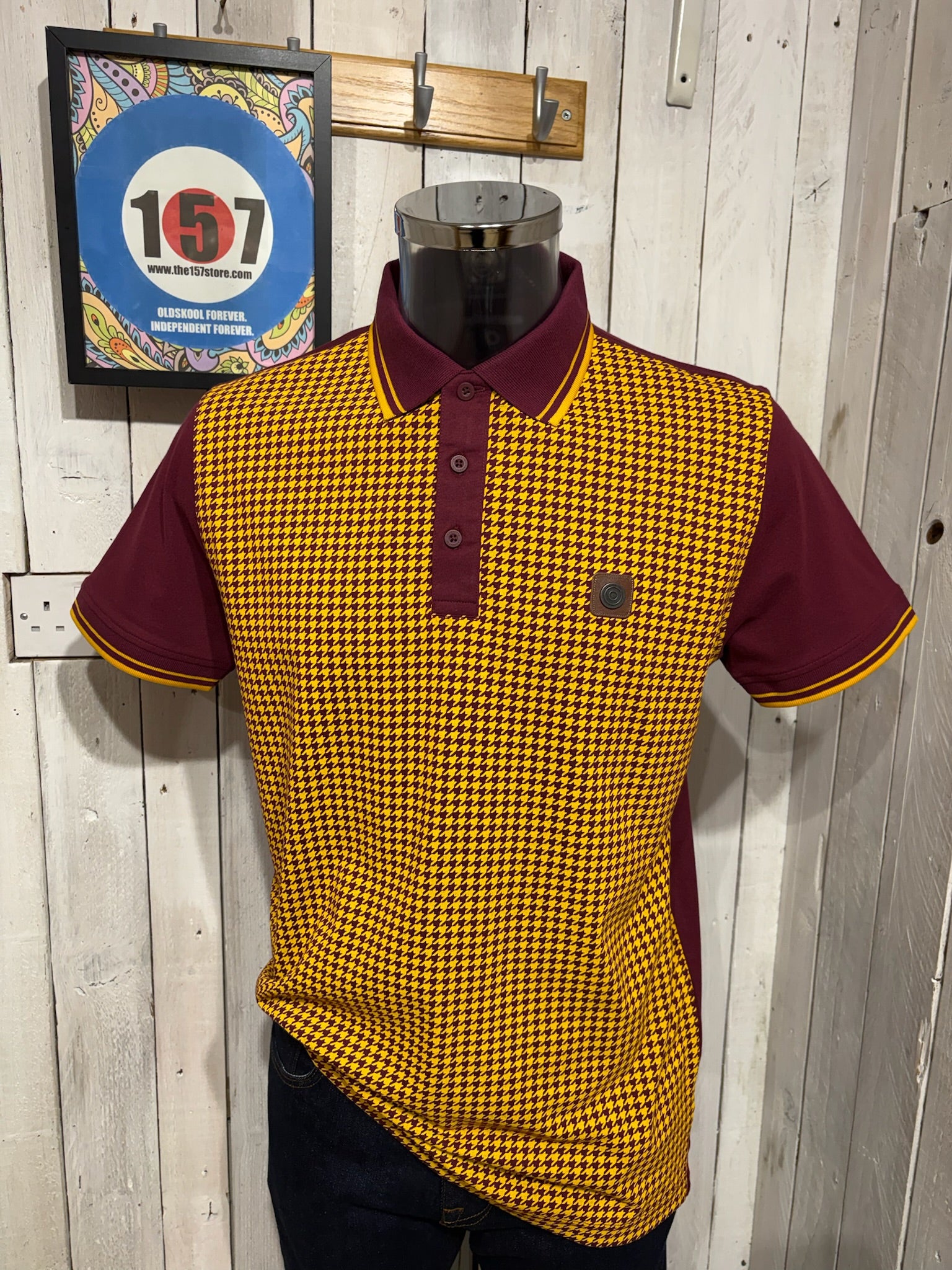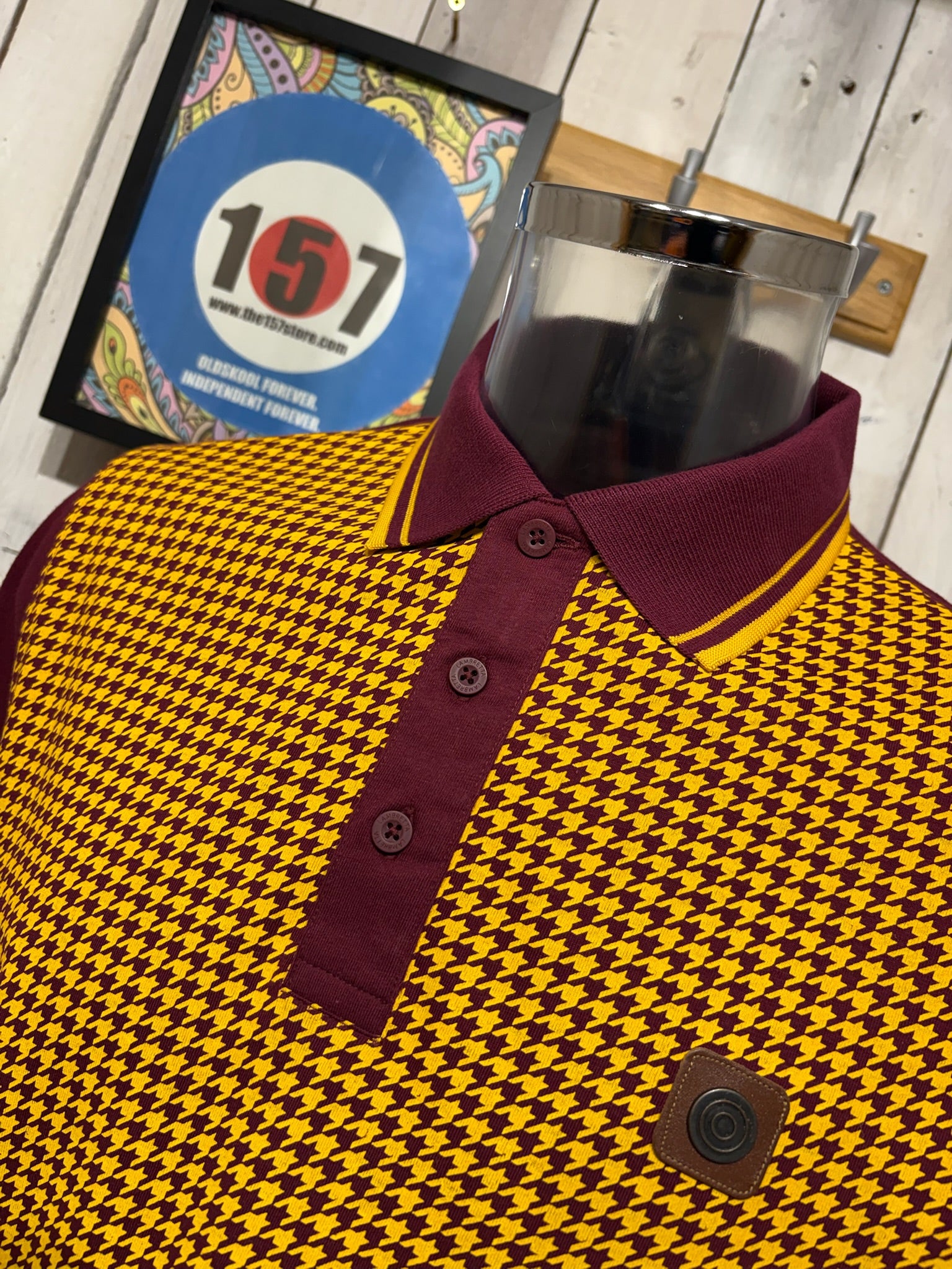 Lambretta Houndstooth Polo - Burgundy / Gold