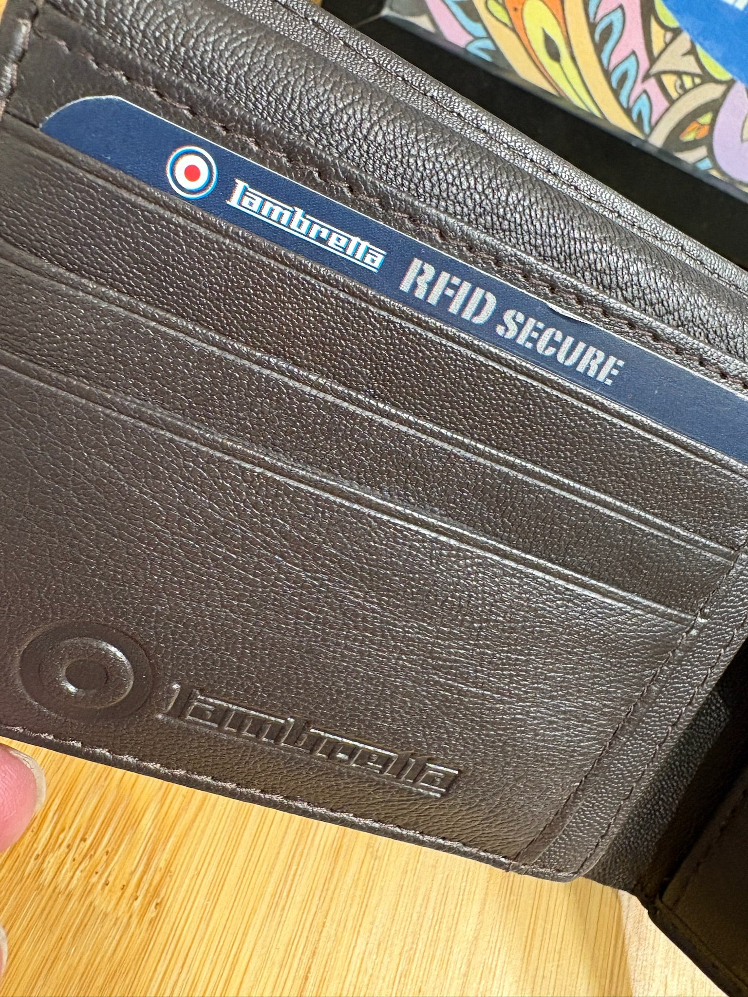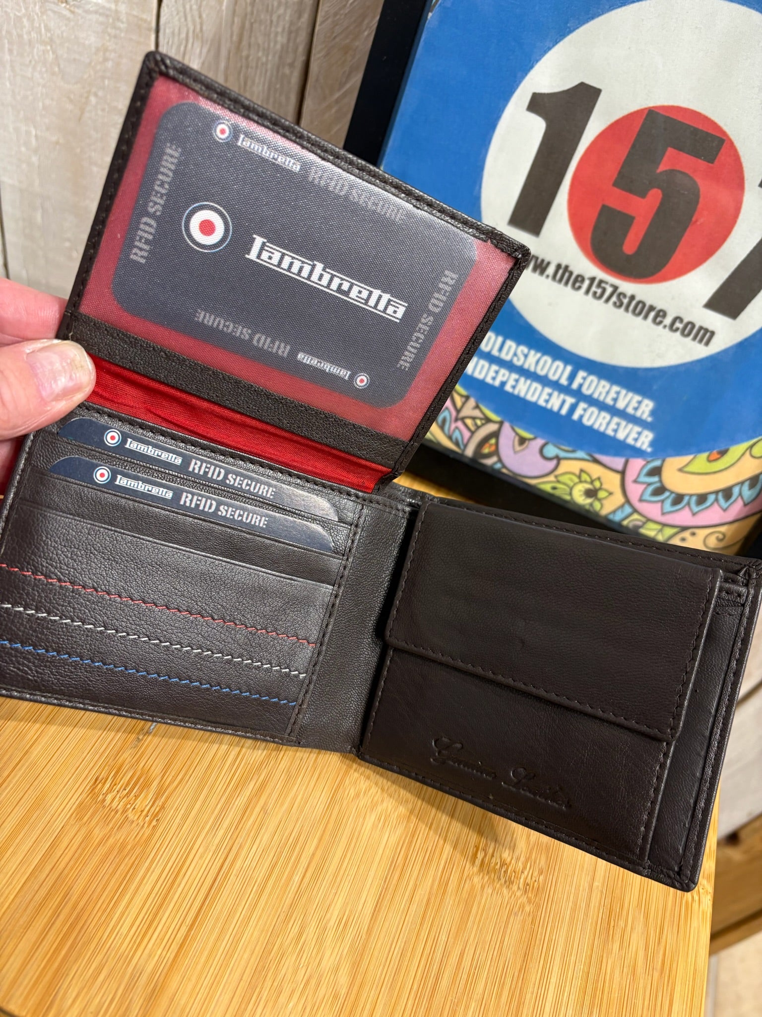 Lambretta RFID Protected Wallet - Embossed Leather Dark Brown