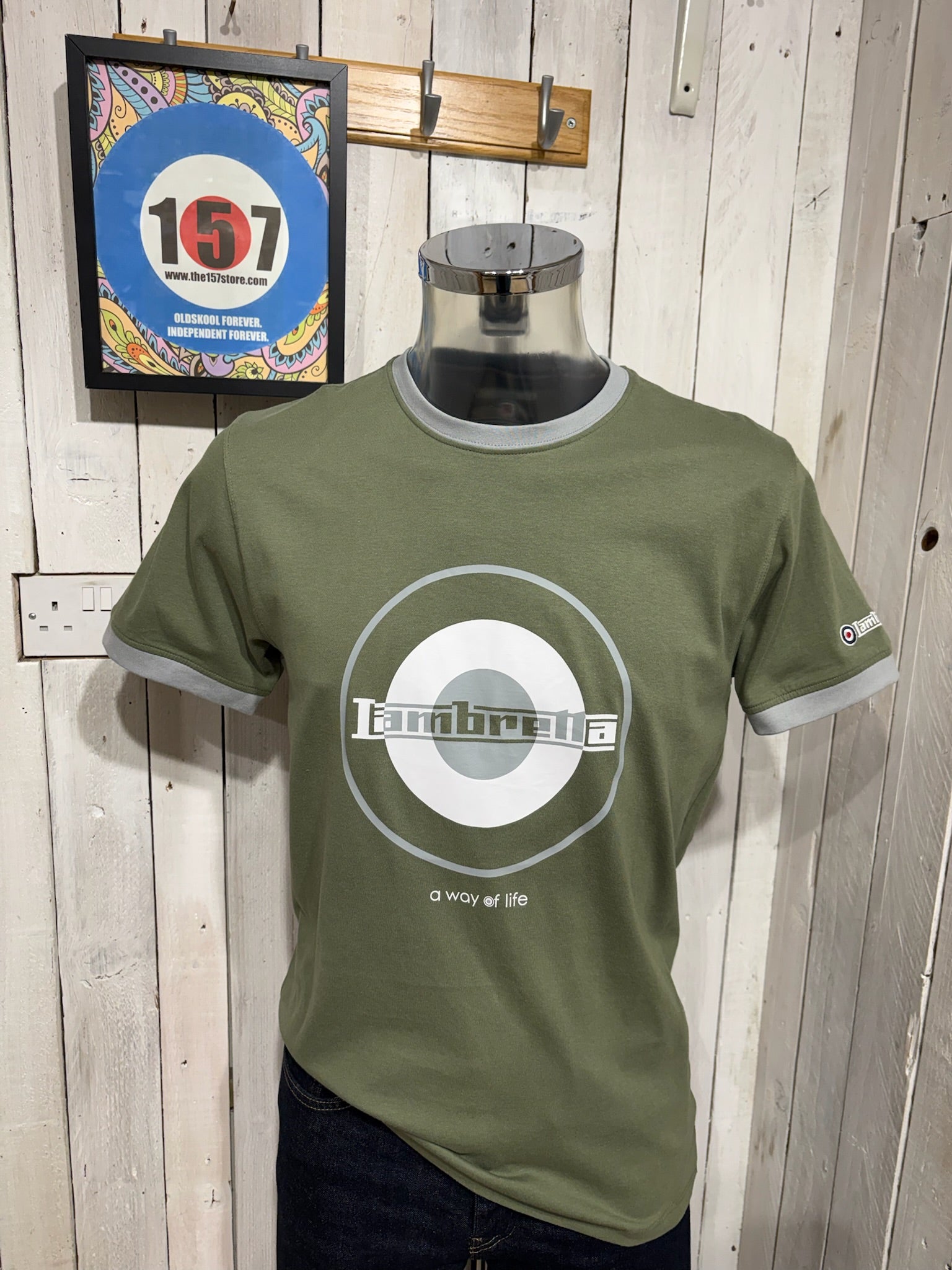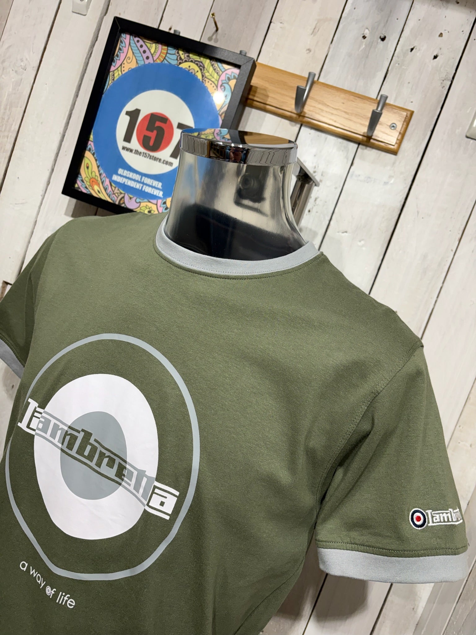 Lambretta Target Print Ringer Tee - Khaki / Grey