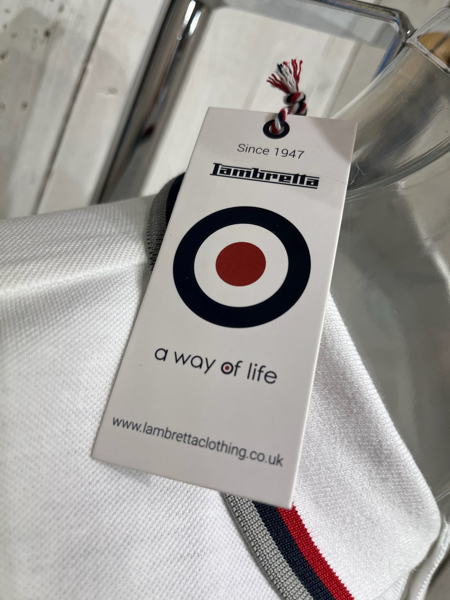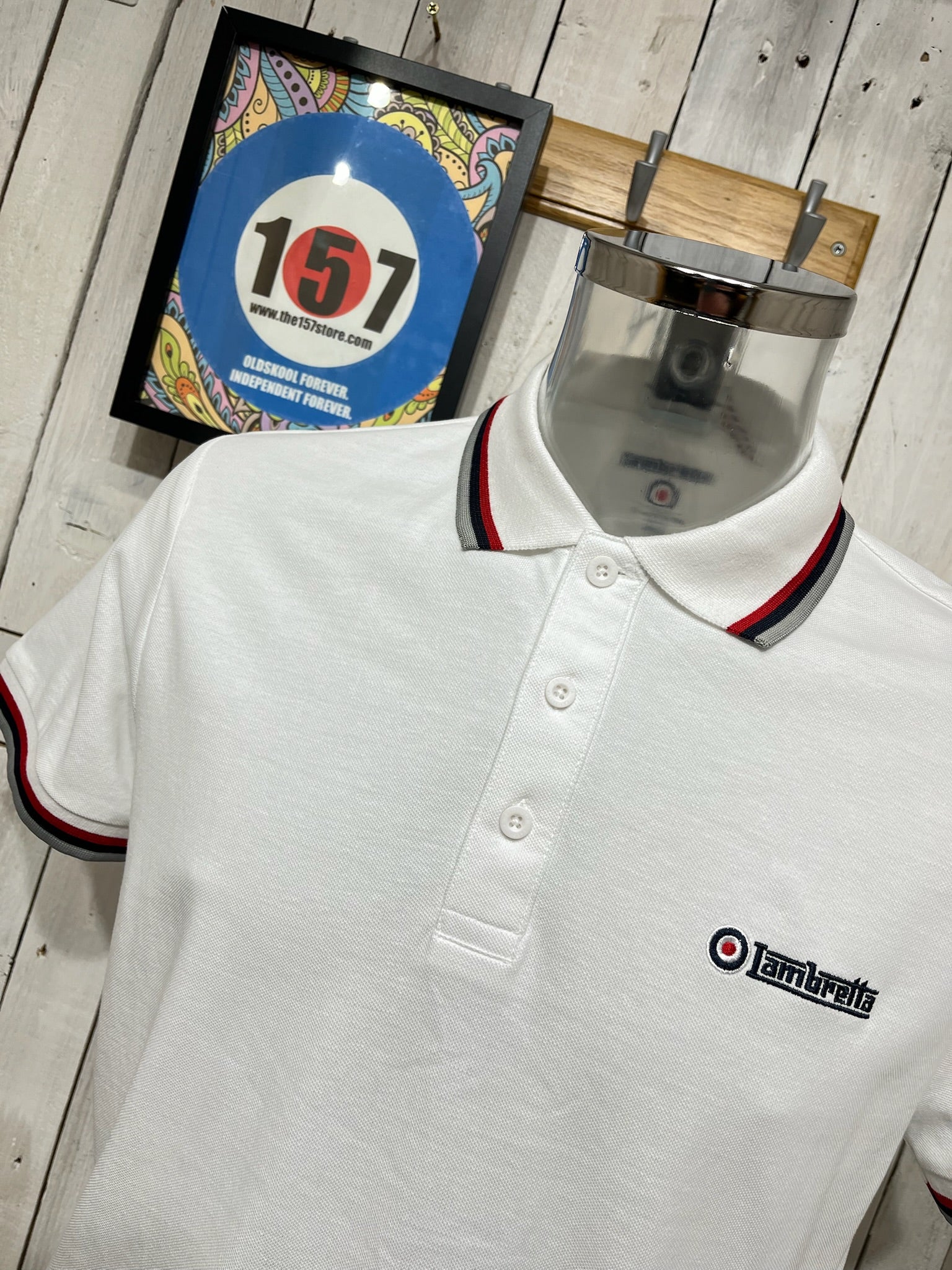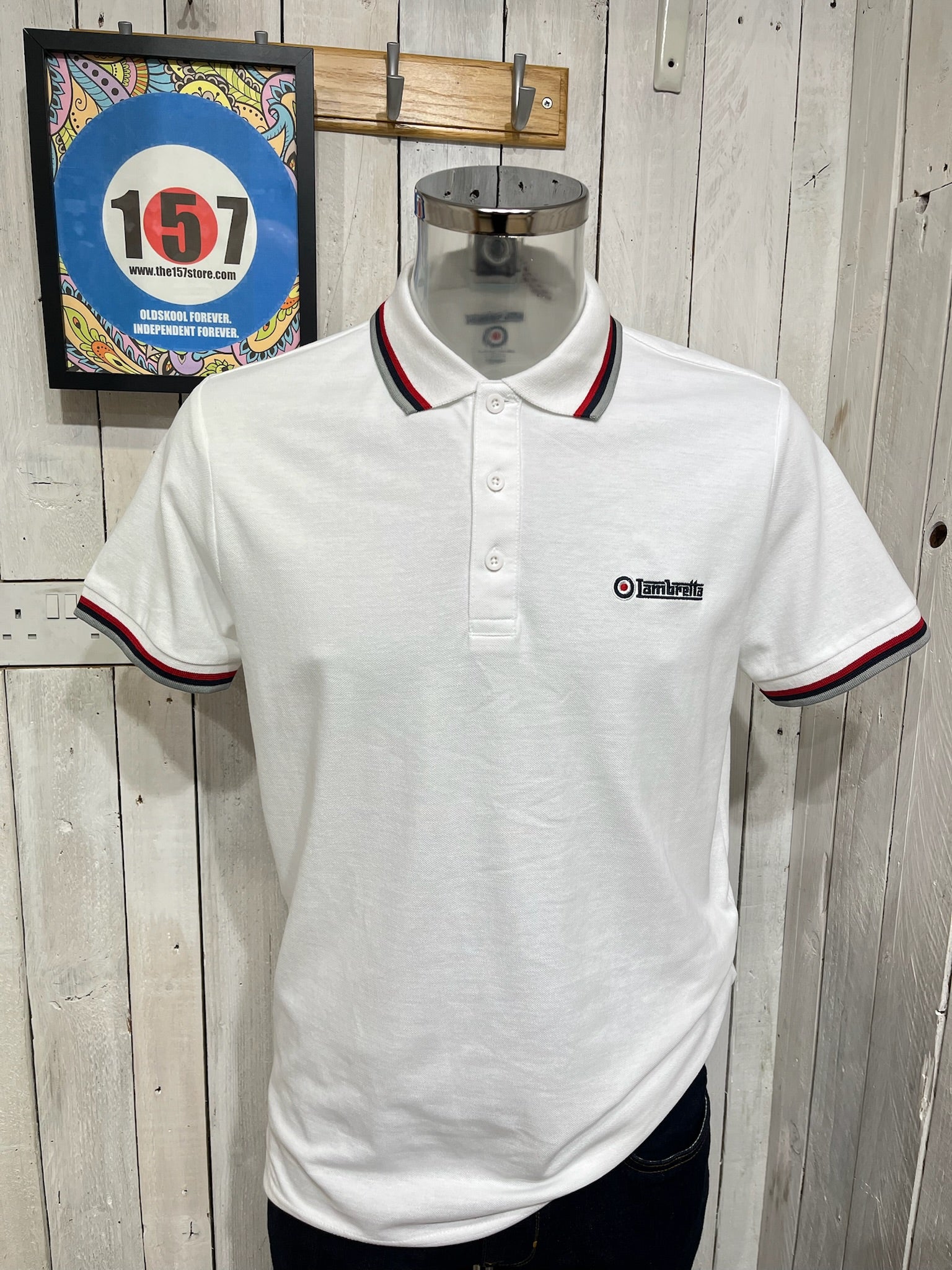 Lambretta Triple Tipped Polo - White Red Navy Grey
