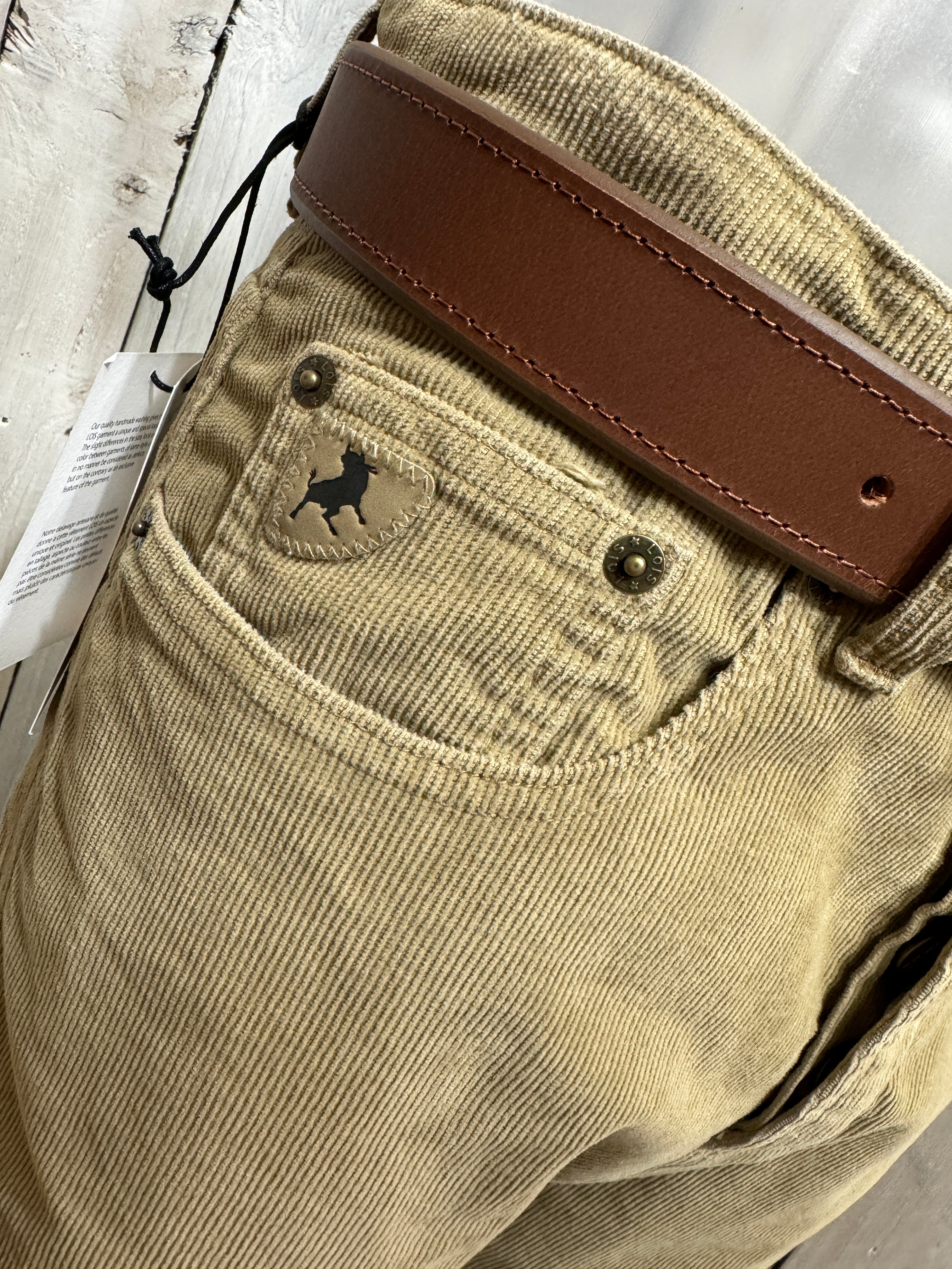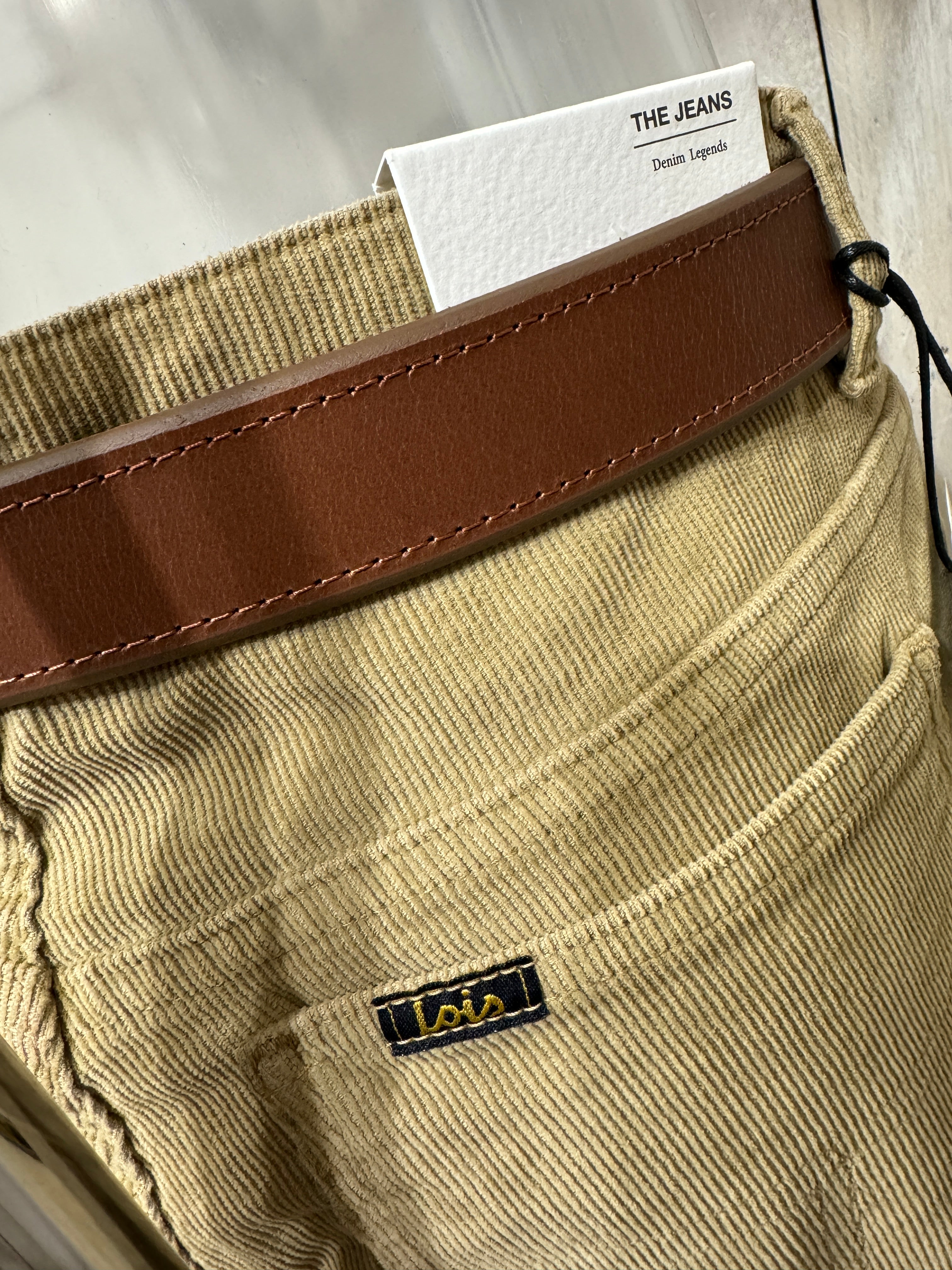 The Dario is our slight bootcut slim, regular fit. Made with needle cord which consists of a slight stretch. A classic 5 pocket shape with tonal stitching. Features our signature front coin pocket and back pocket Lois branding. A nod to our 70's Roots