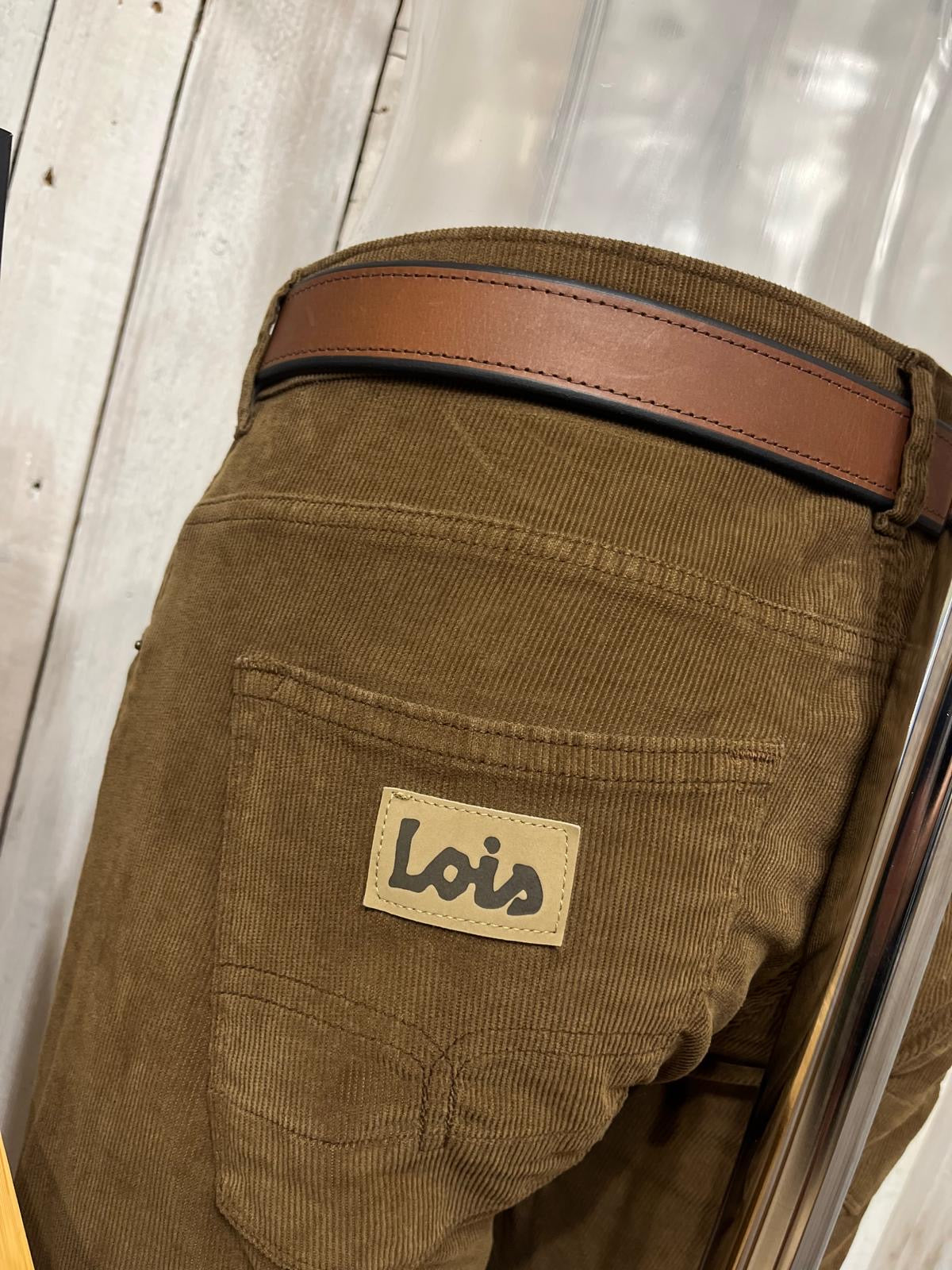 The Sierra Cord is slim/regular slight taper fit made in needle cord which consists of a slight stretch for better comfort. It’s a classic 5 pocket shape with tonal stitching. Featuring Lois embossed branded buttons for the fly and rivets. As well our signature washed suede branding on the front and back pockets The Sierra is a classic Lois piece. A smart casual Cord.