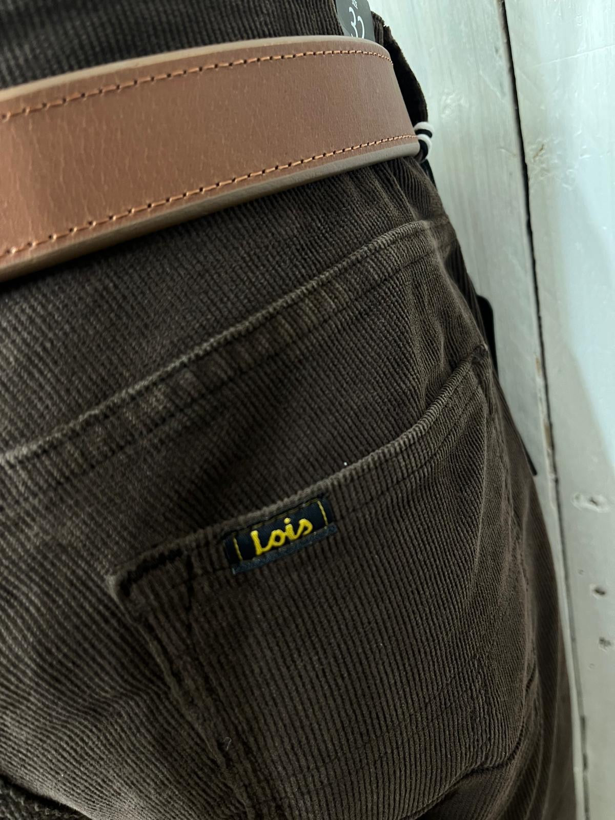 The Sierra Cord is slim/regular slight taper fit made in needle cord which consists of a slight stretch for better comfort. It’s a classic 5 pocket shape with tonal stitching. Featuring Lois embossed branded buttons for the fly and rivets. As well our signature washed suede branding on the front and back pockets The Sierra is a classic Lois piece. A smart casual Cord.