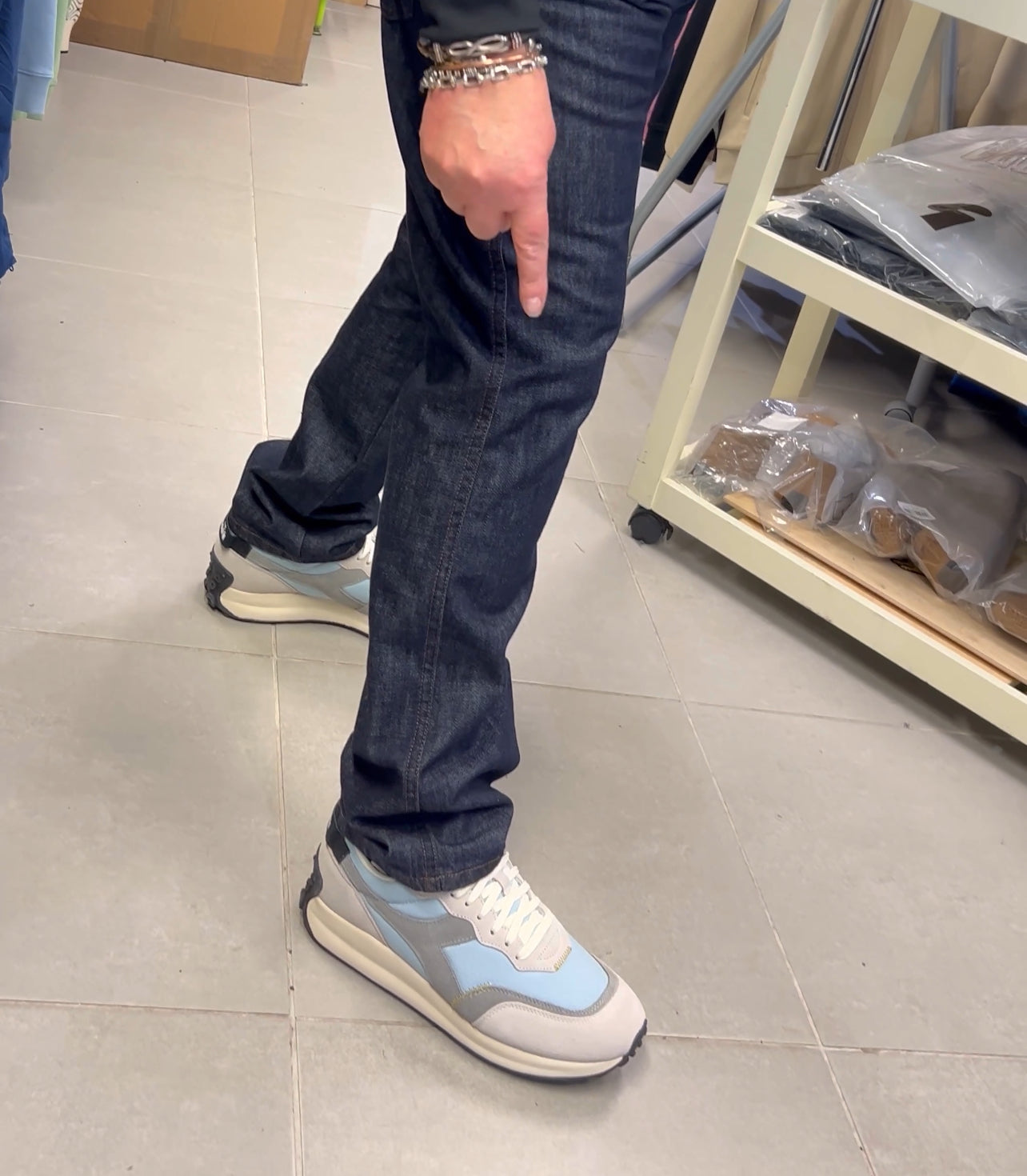 Terrace fit is a regular fit from waist to knee, and then a slight taper to create a subtle narrowed finish above the shoe.