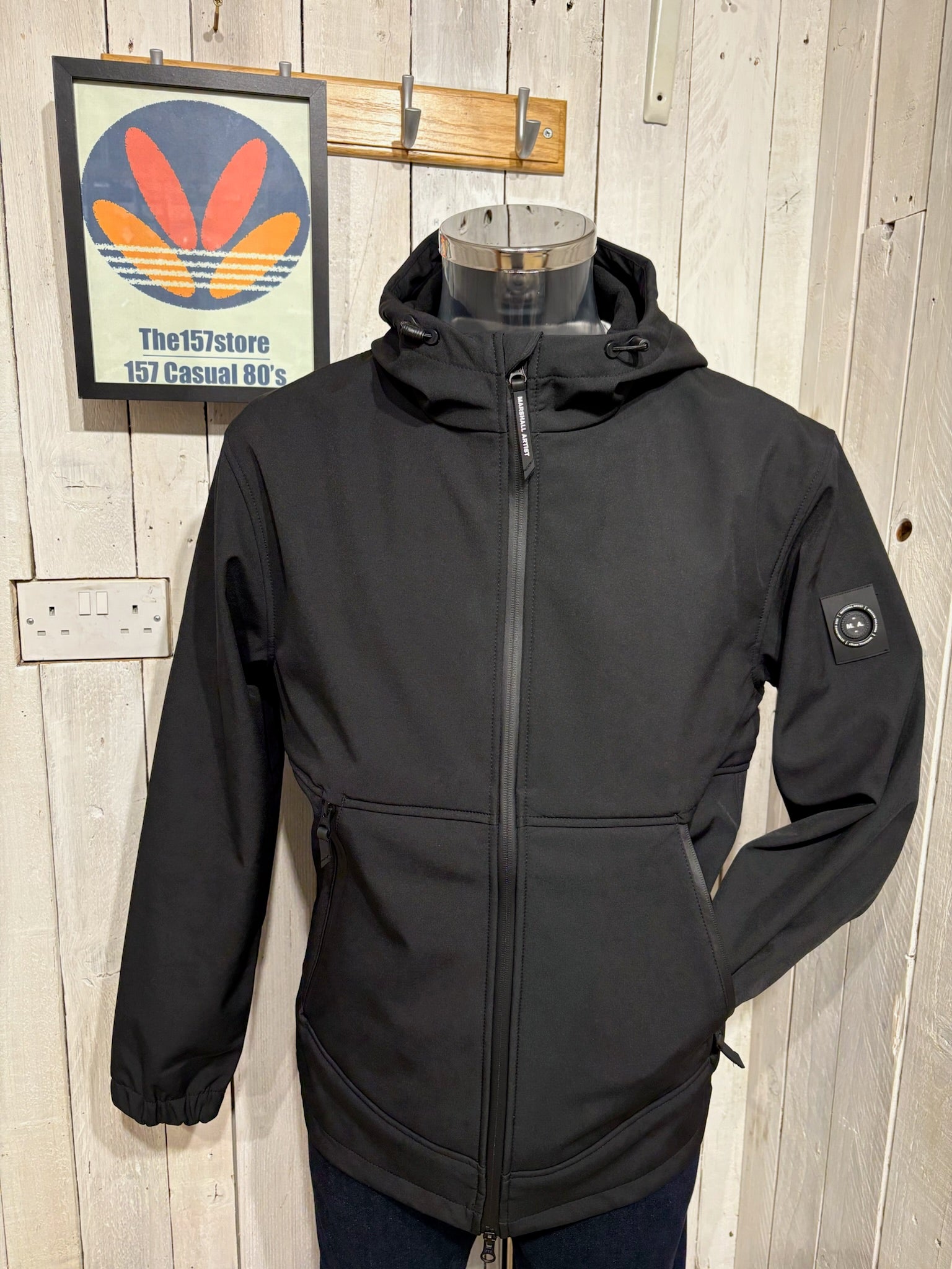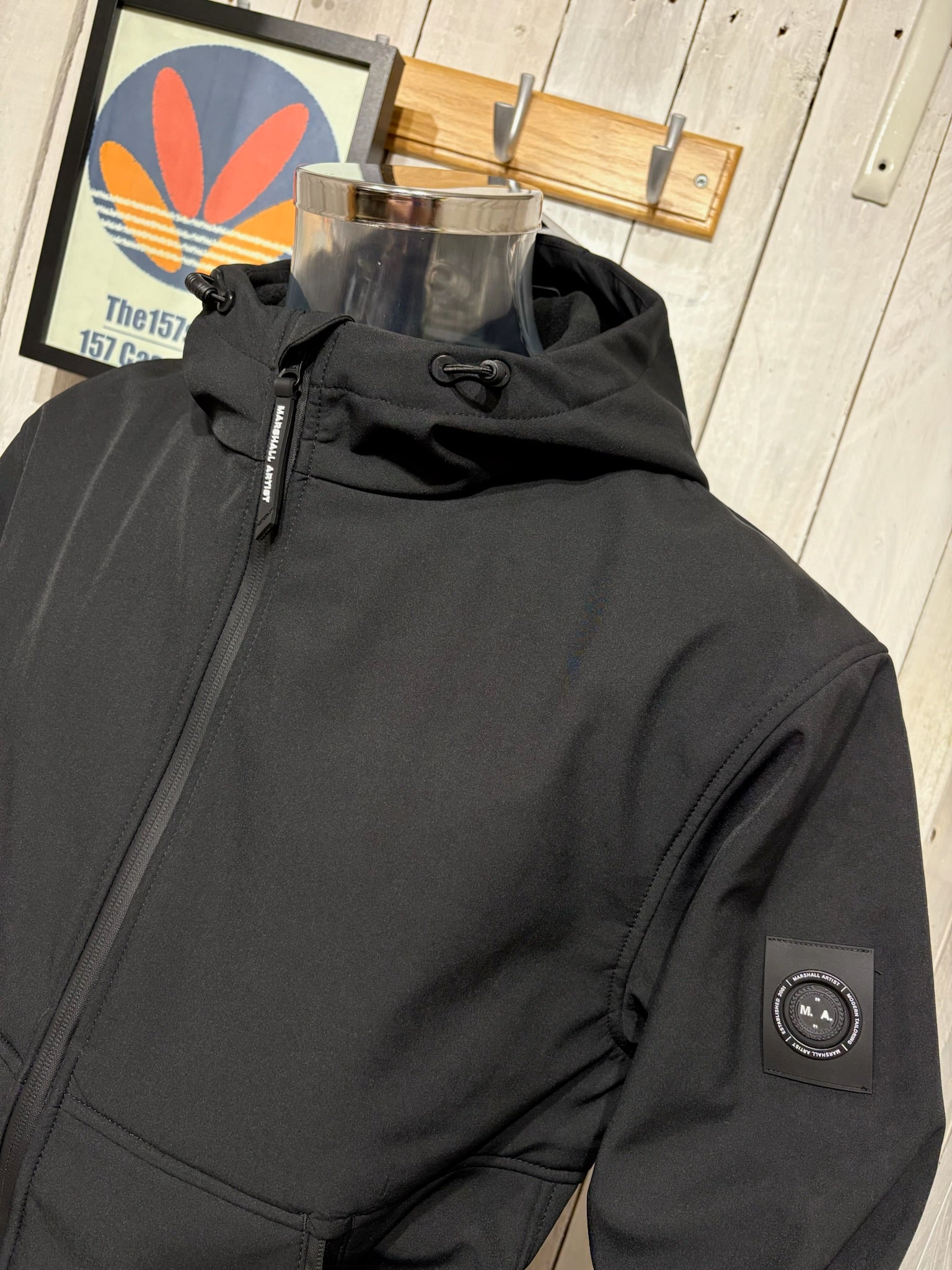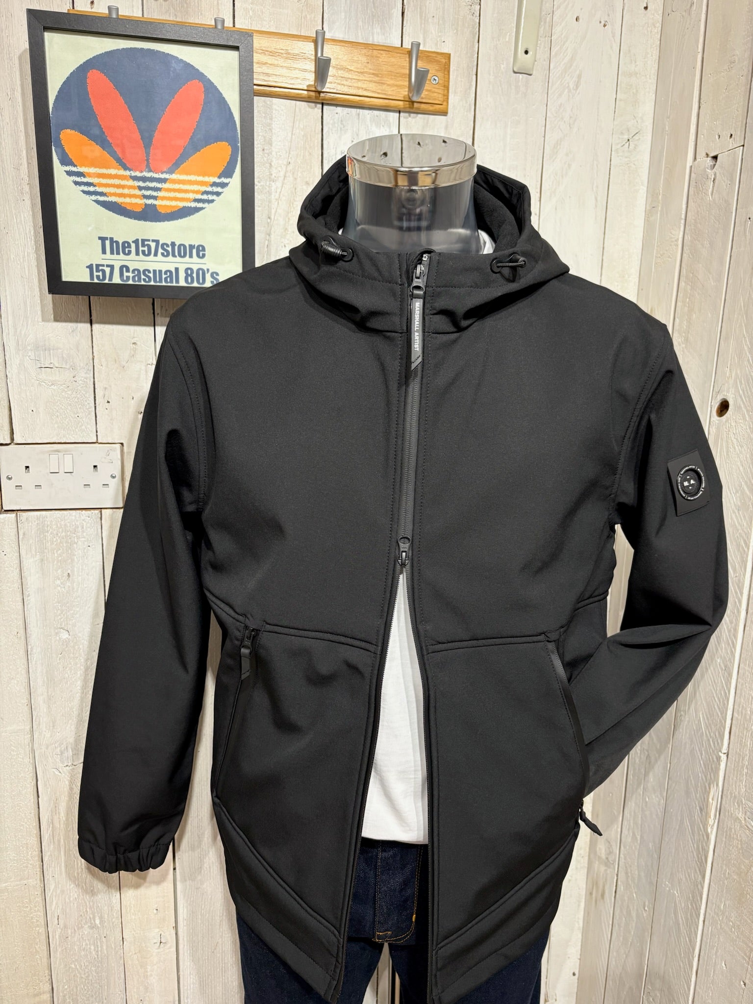 This jacket is constructed with a softshell fabric, stretch woven outer with fleece backing for warmth. Featuring elasticated cuffs, coated zips and adjustable hem & hood. Finished with Marshall Artist print to the hood and Siren badge to the left sleeve. Regular fit.
