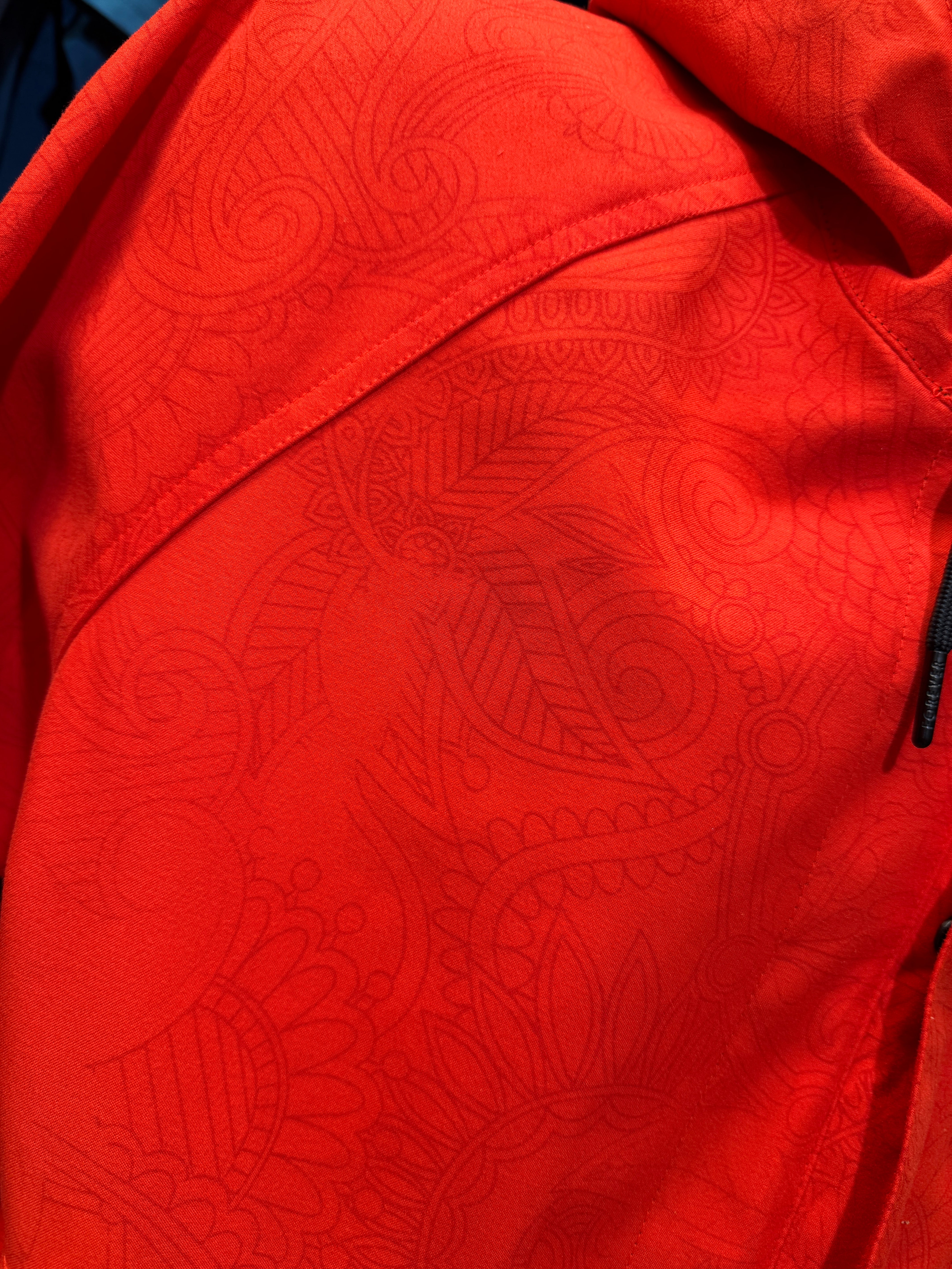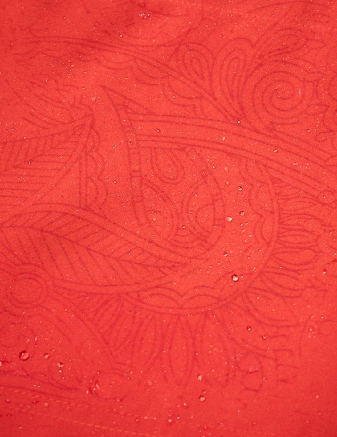 Sustained exposure to water and rain reveals a stunning tonal Resonance Paisley that holds until dry.