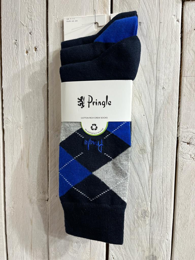 Pringle Argyle Diamond Socks - Royal Blue Grey