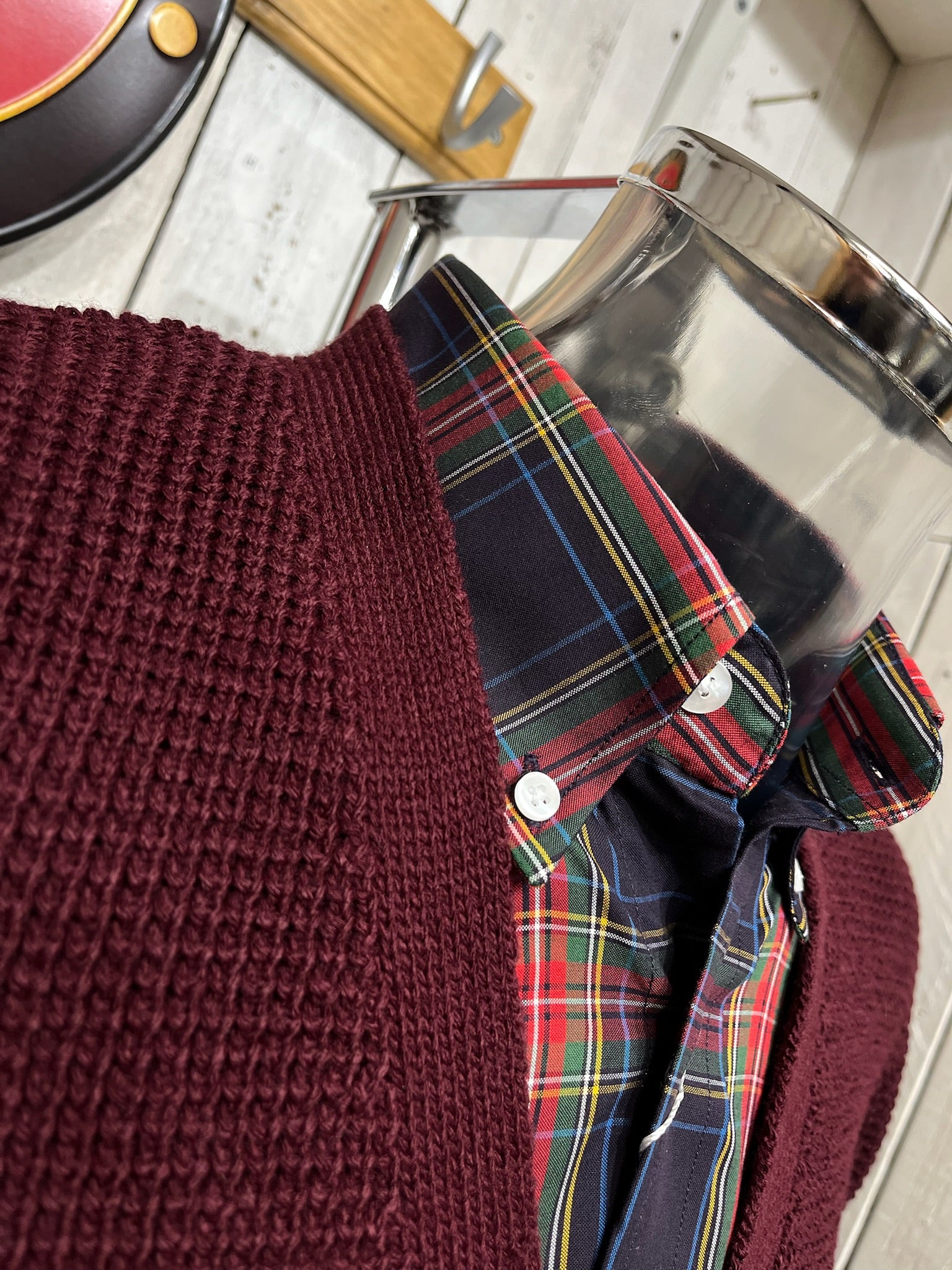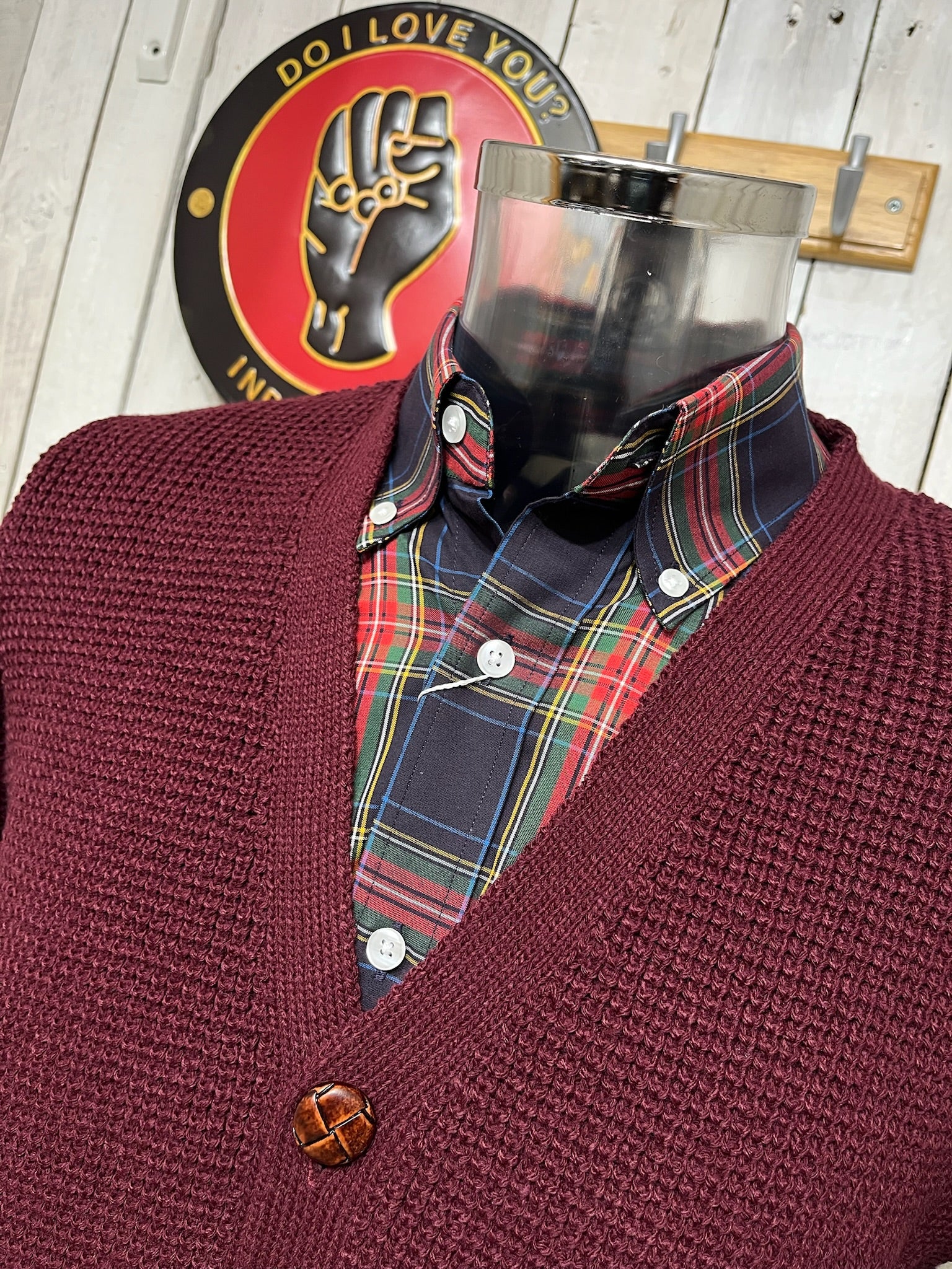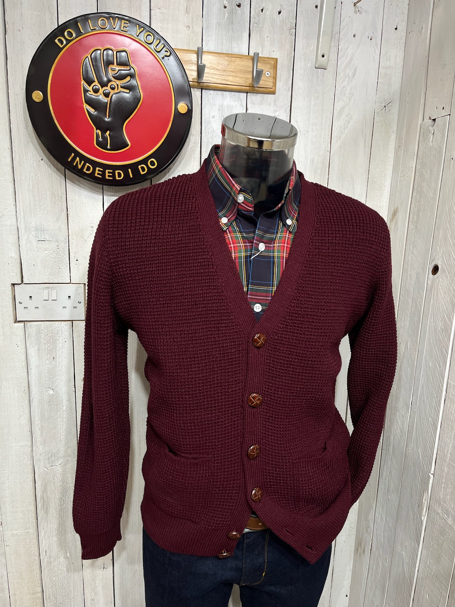 Relco Original Waffle Knit Cardigan - Burgundy
