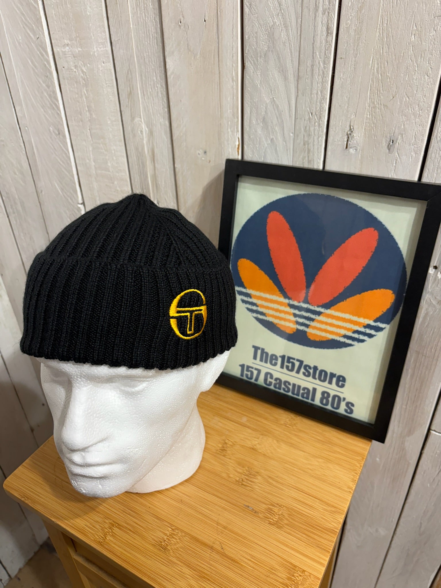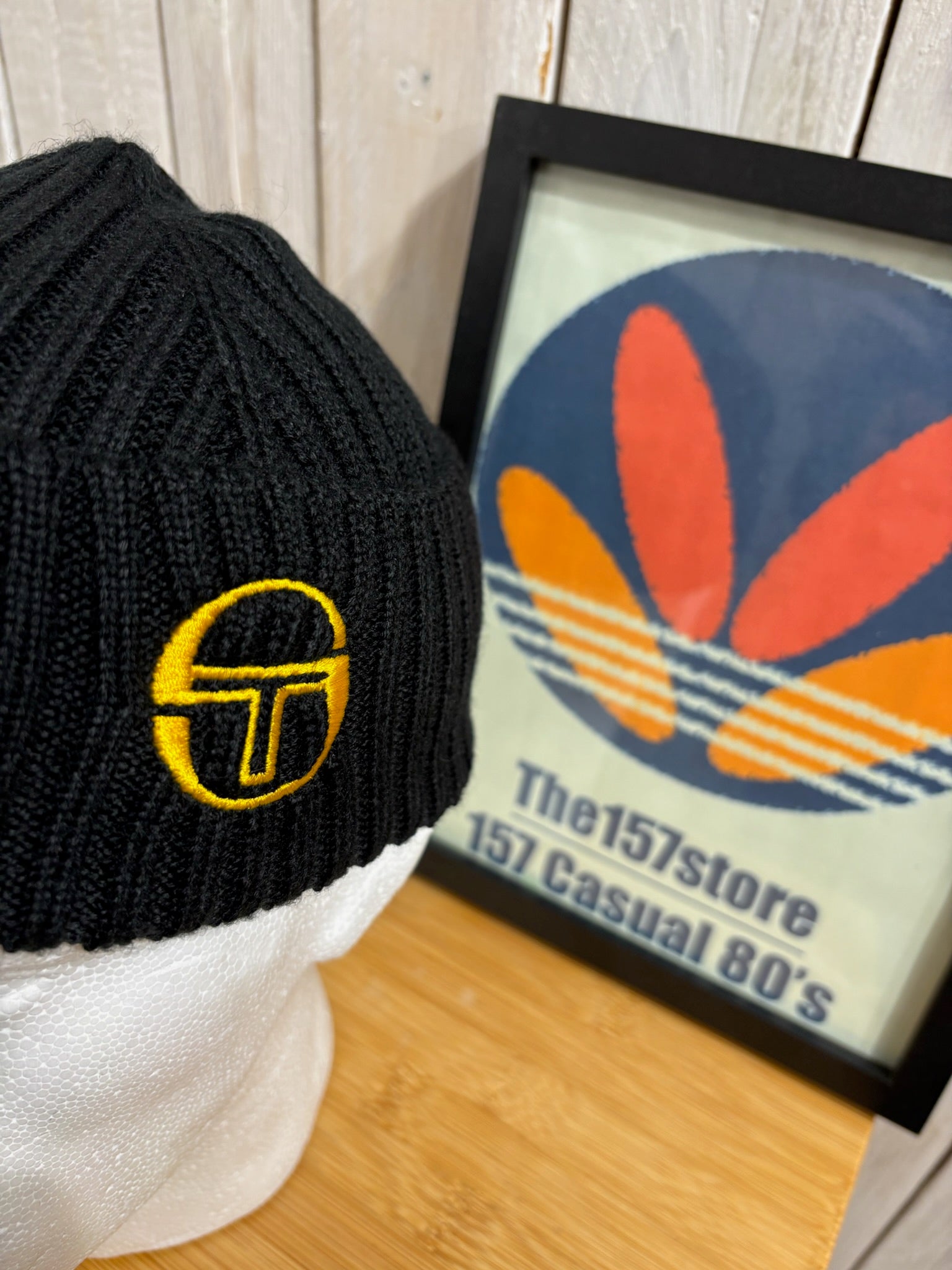 Sergio Tacchini Seppi Ribbed Turn Up Beanie - Black / Old Gold