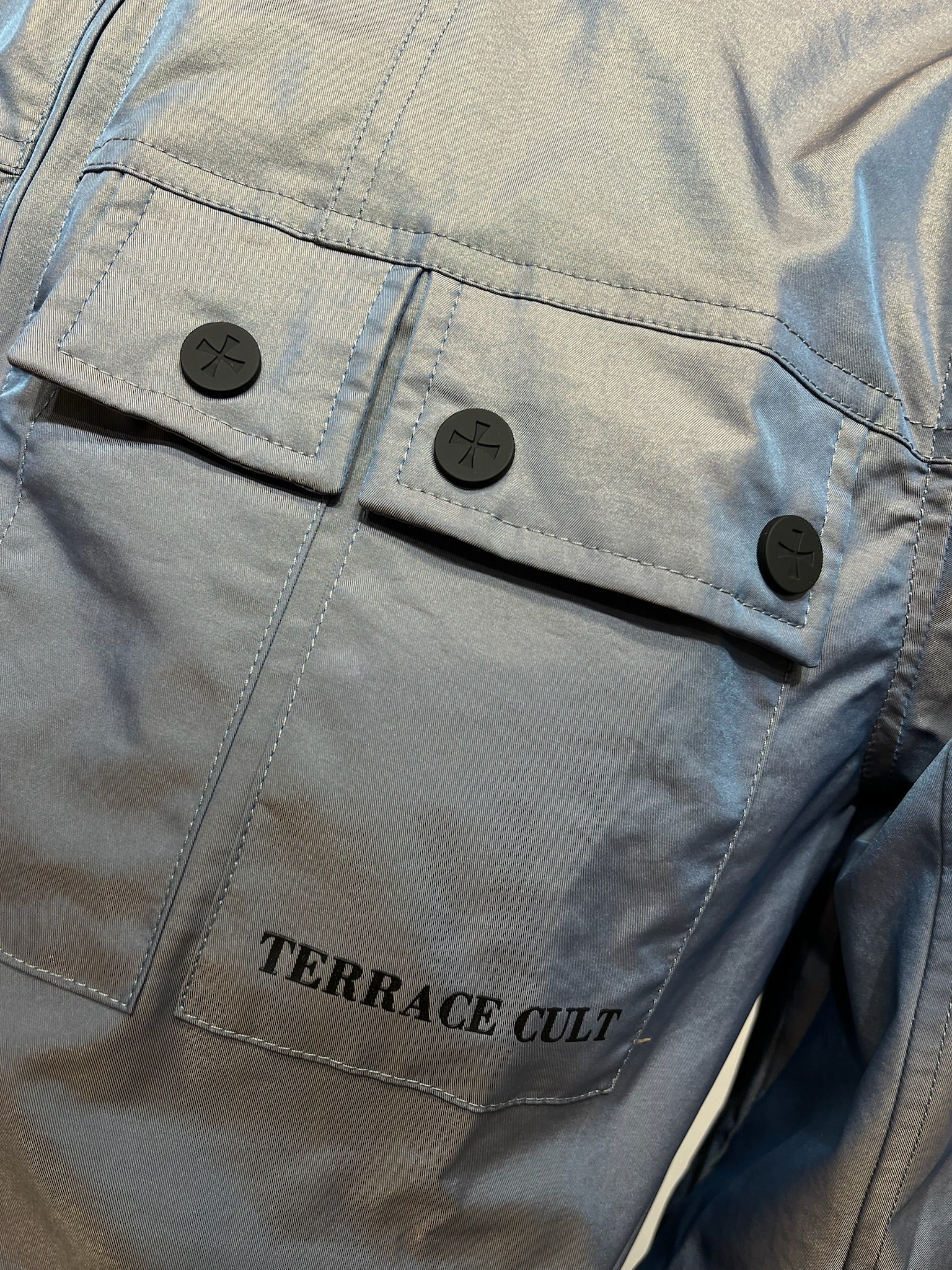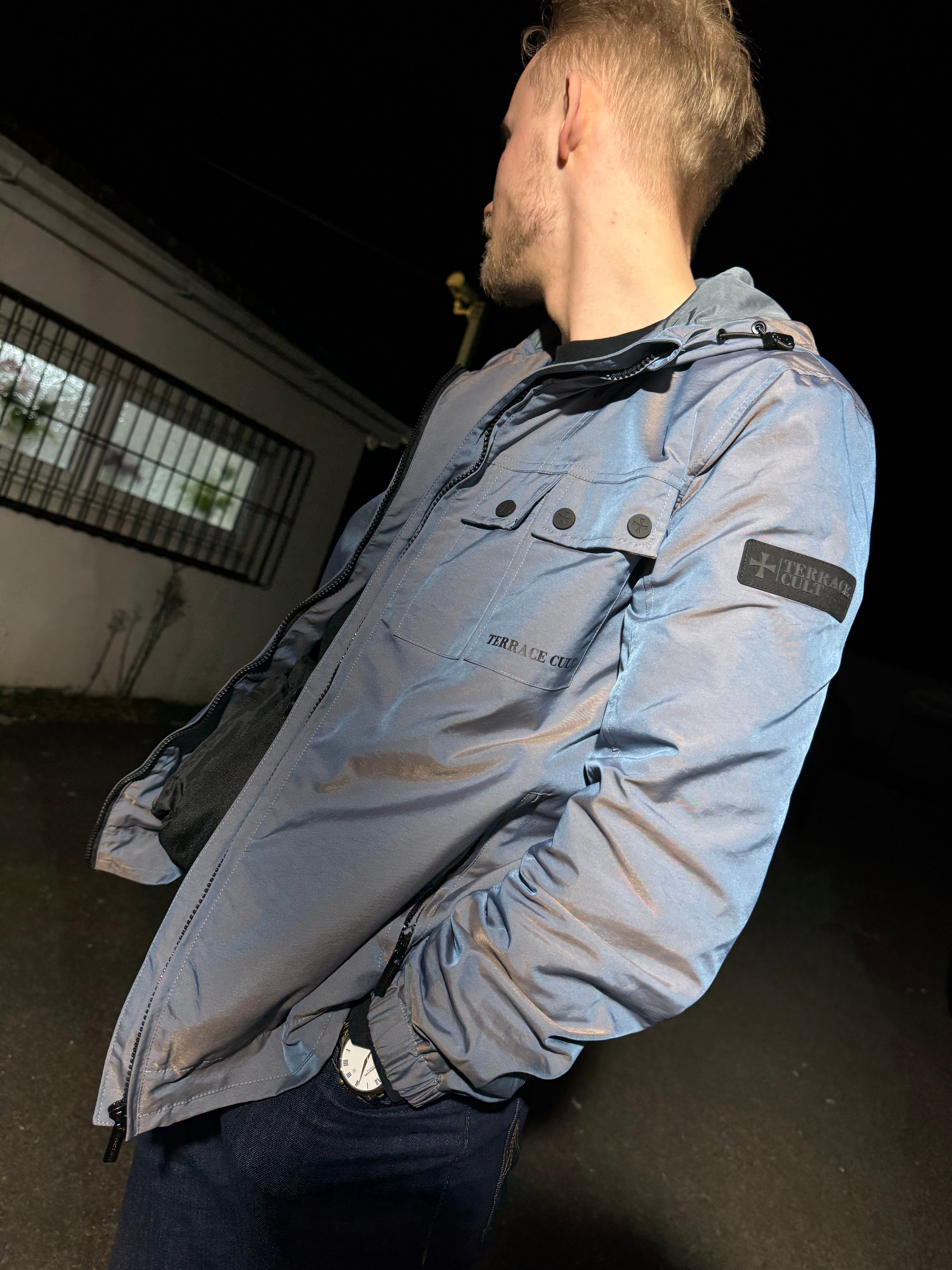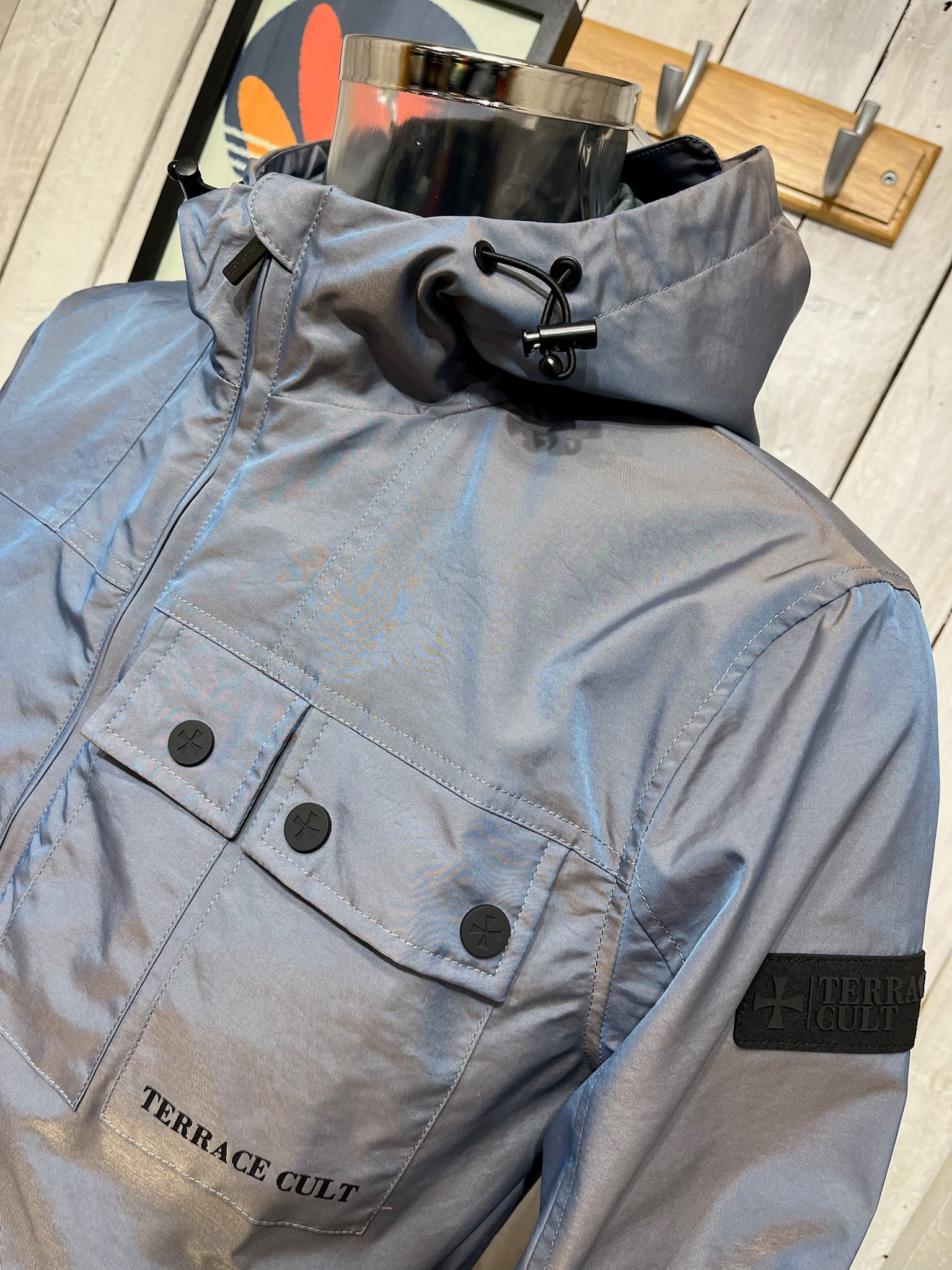 "Terrace Cult just changed the game by bringing a stunning tonic two-tone finish to a classic 'festival jacket' style. One moment it's silver, the next it's throwing off shades of blue. Unreal! The perfect blend of casual influence and iconic British colours."