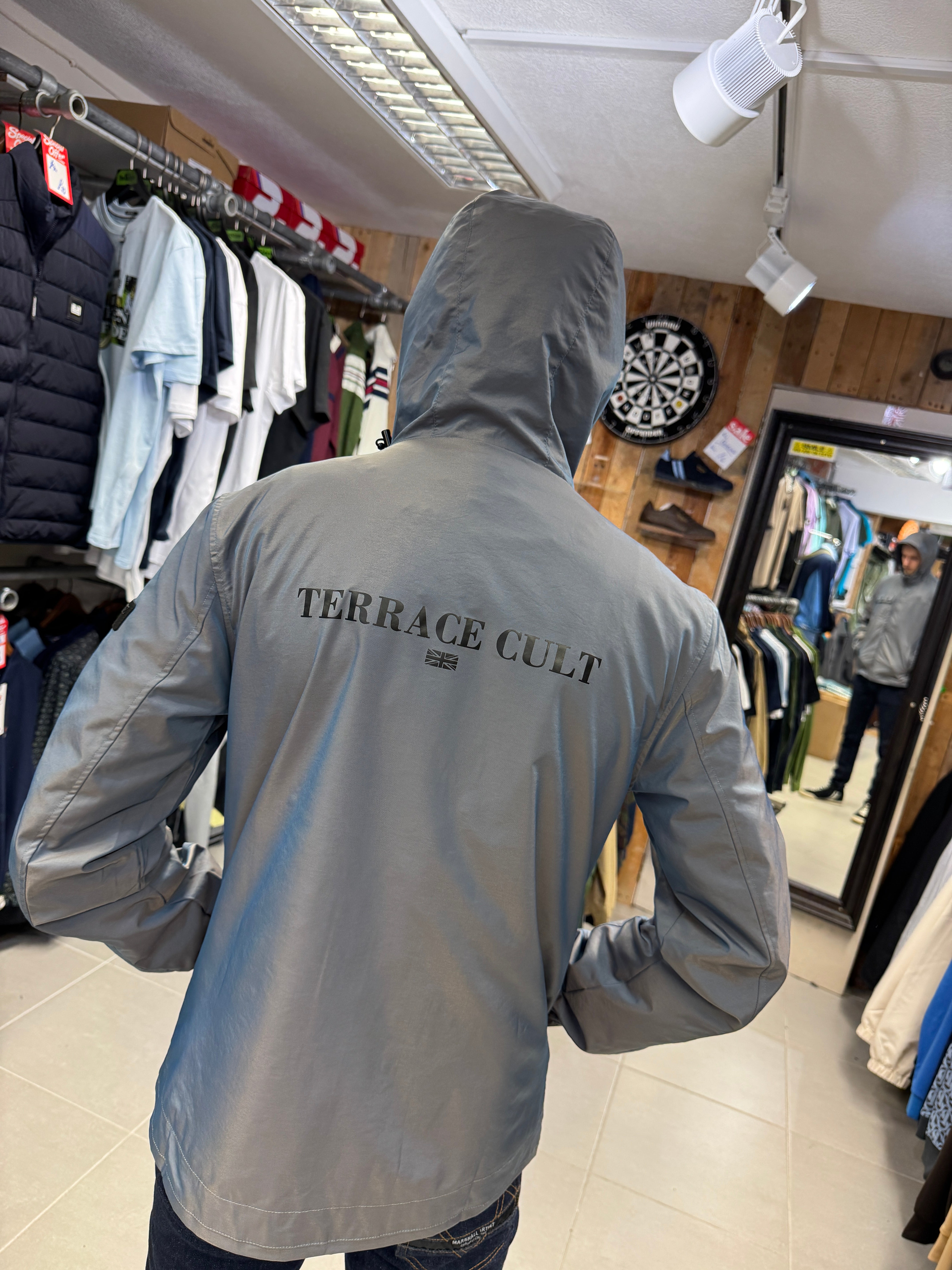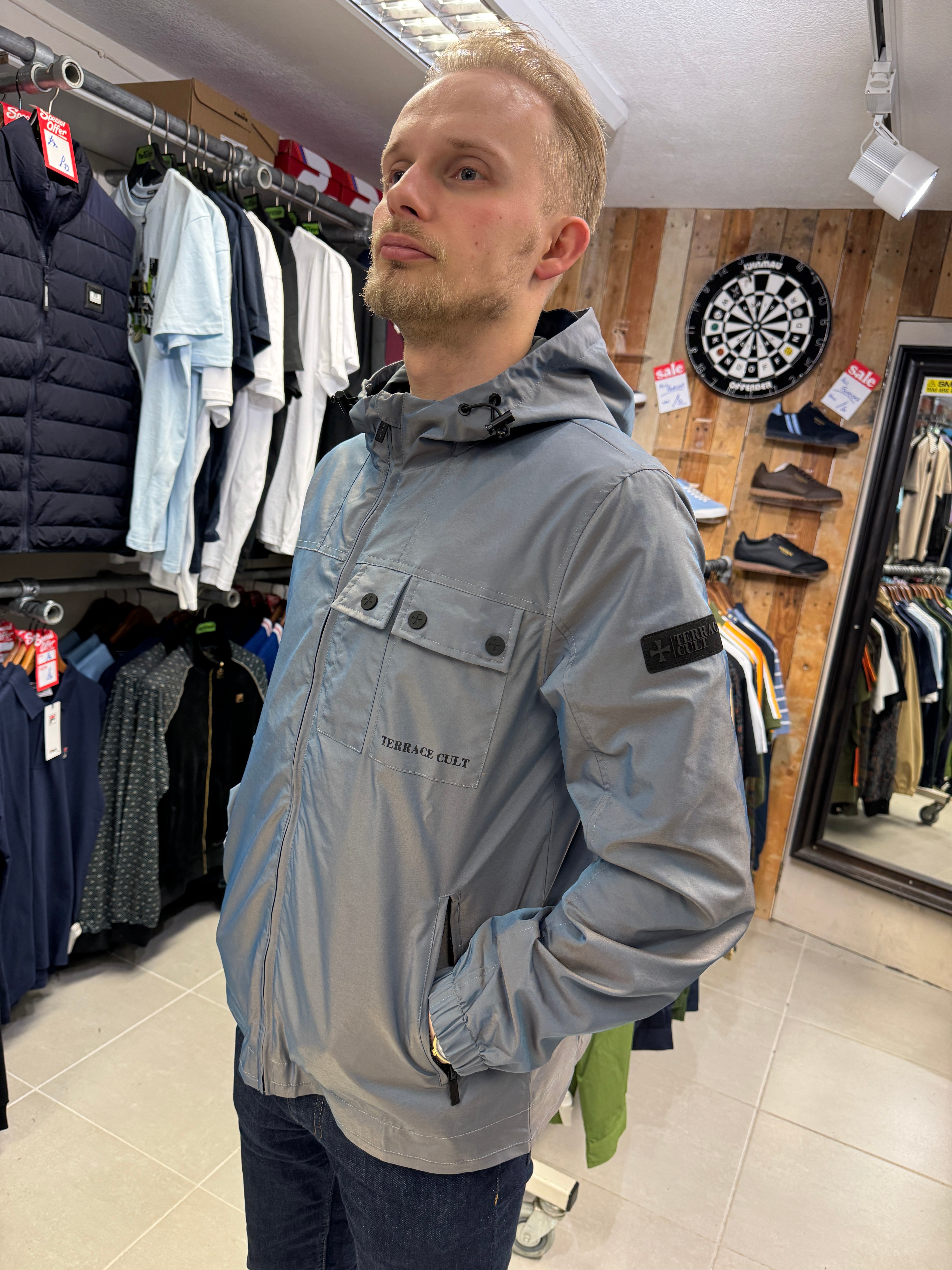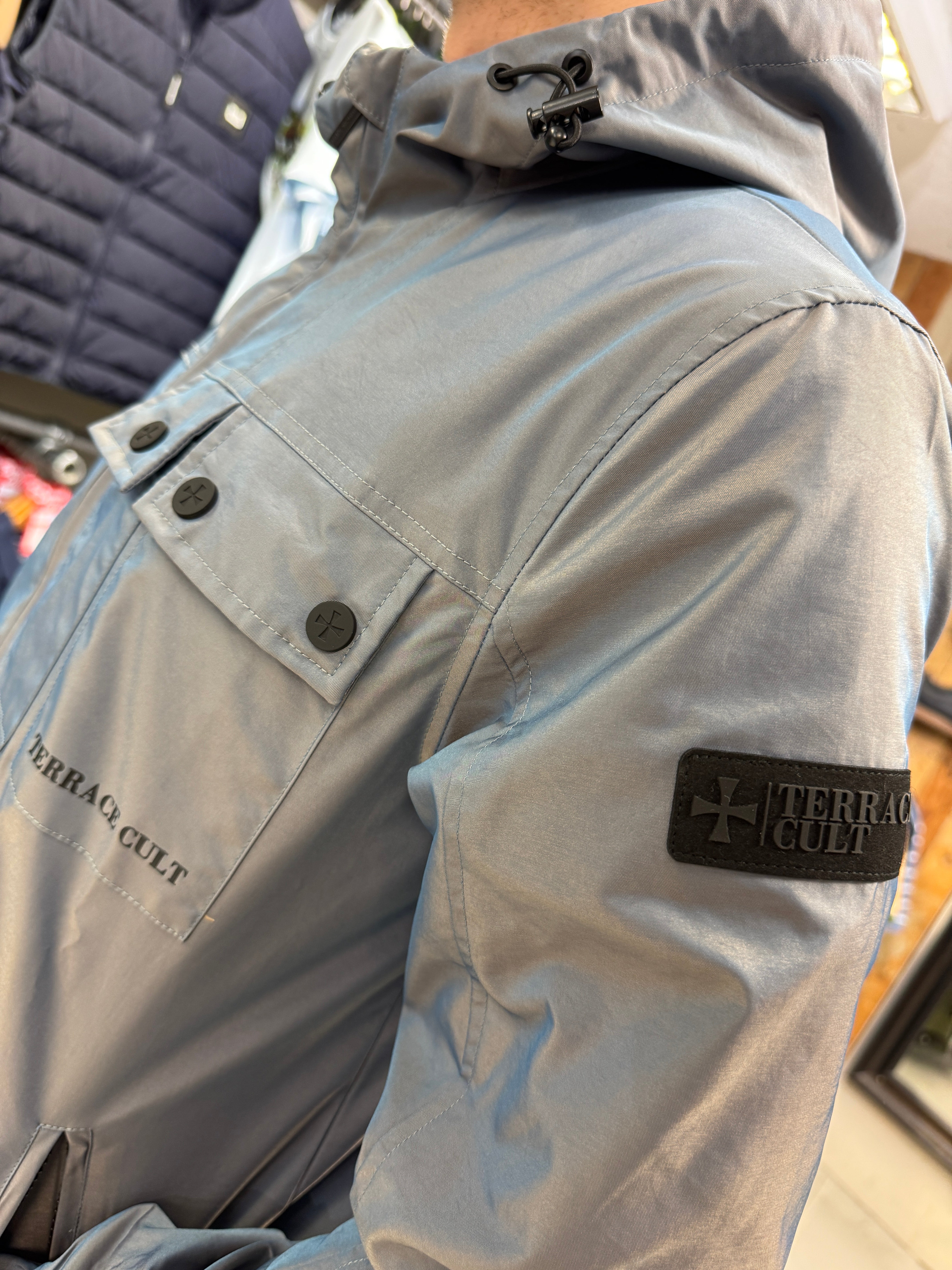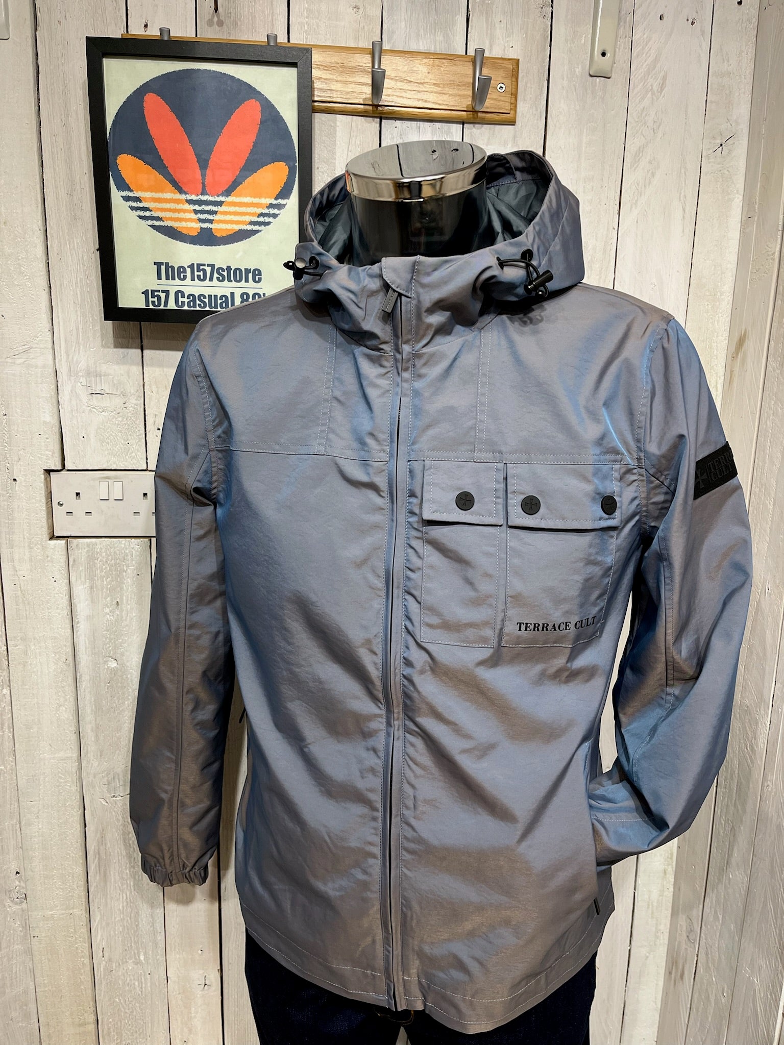 "Terrace Cult just changed the game by bringing a stunning tonic two-tone finish to a classic 'festival jacket' style. One moment it's silver, the next it's throwing off shades of blue. Unreal! The perfect blend of casual influence and iconic British colours."