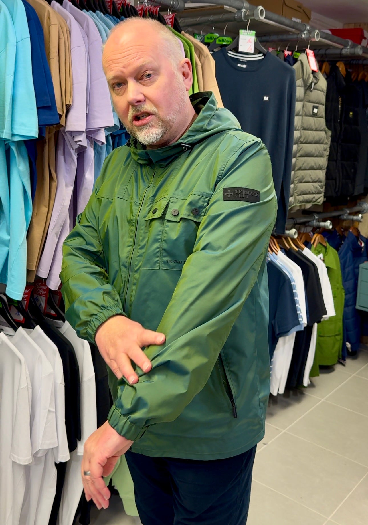 "Terrace Cult just changed the game by bringing a stunning tonic two-tone finish to a classic 'festival jacket' style. One moment it's green, the next it's throwing off shades of blue. Unreal! The perfect blend of casual influence and iconic British colours. British Racing Green has never turned so many heads."