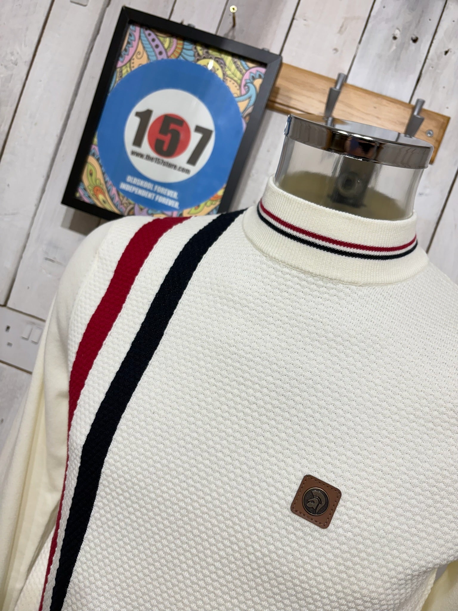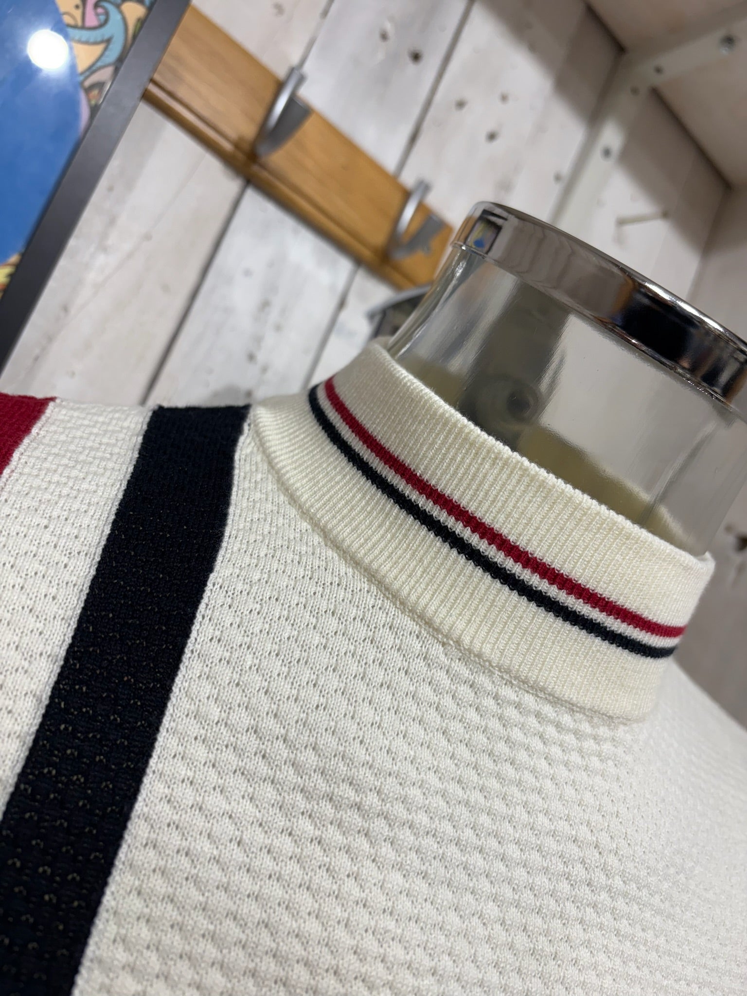 Trojan Racing Stripe Waffle Knit - Ecru