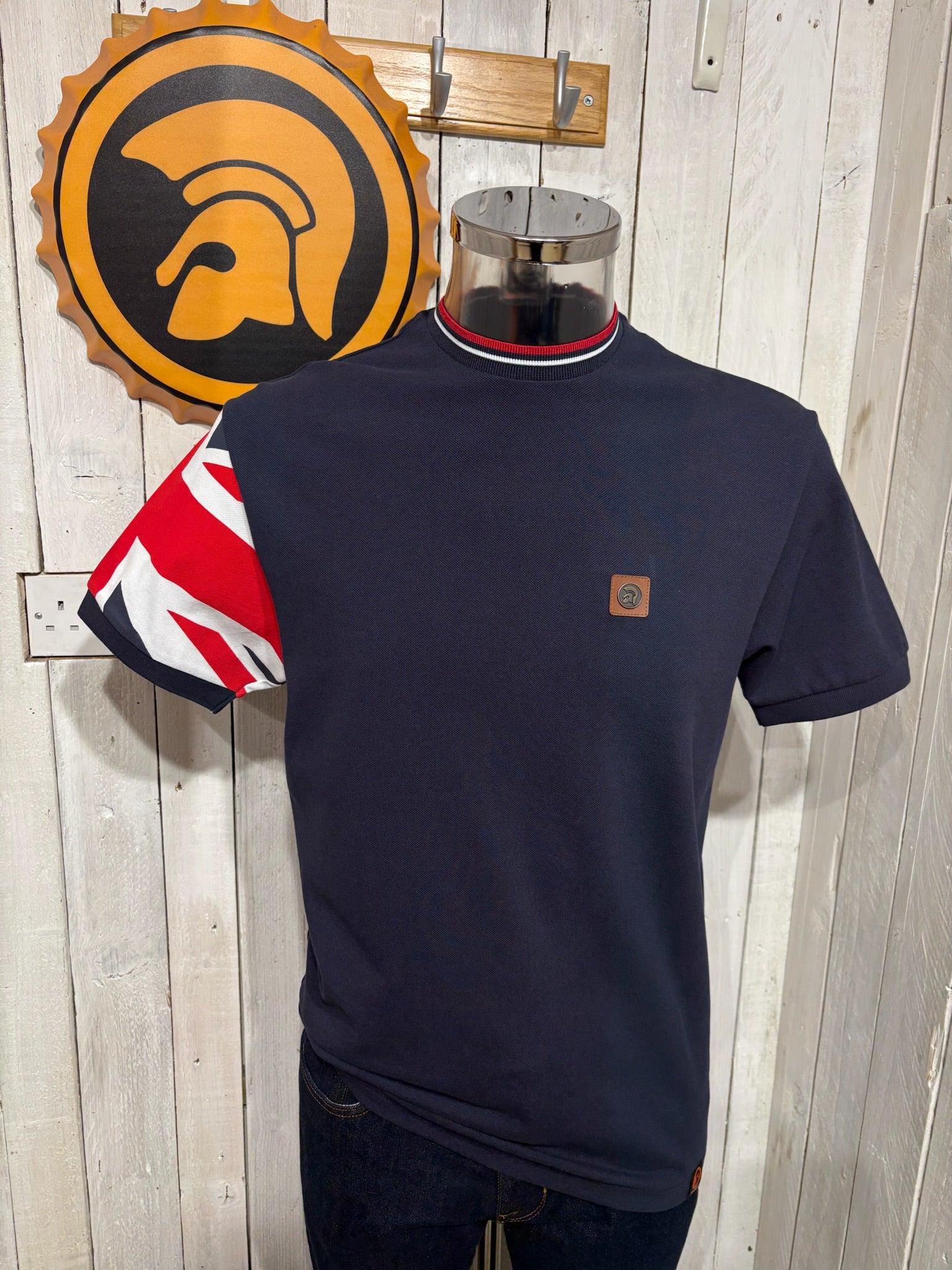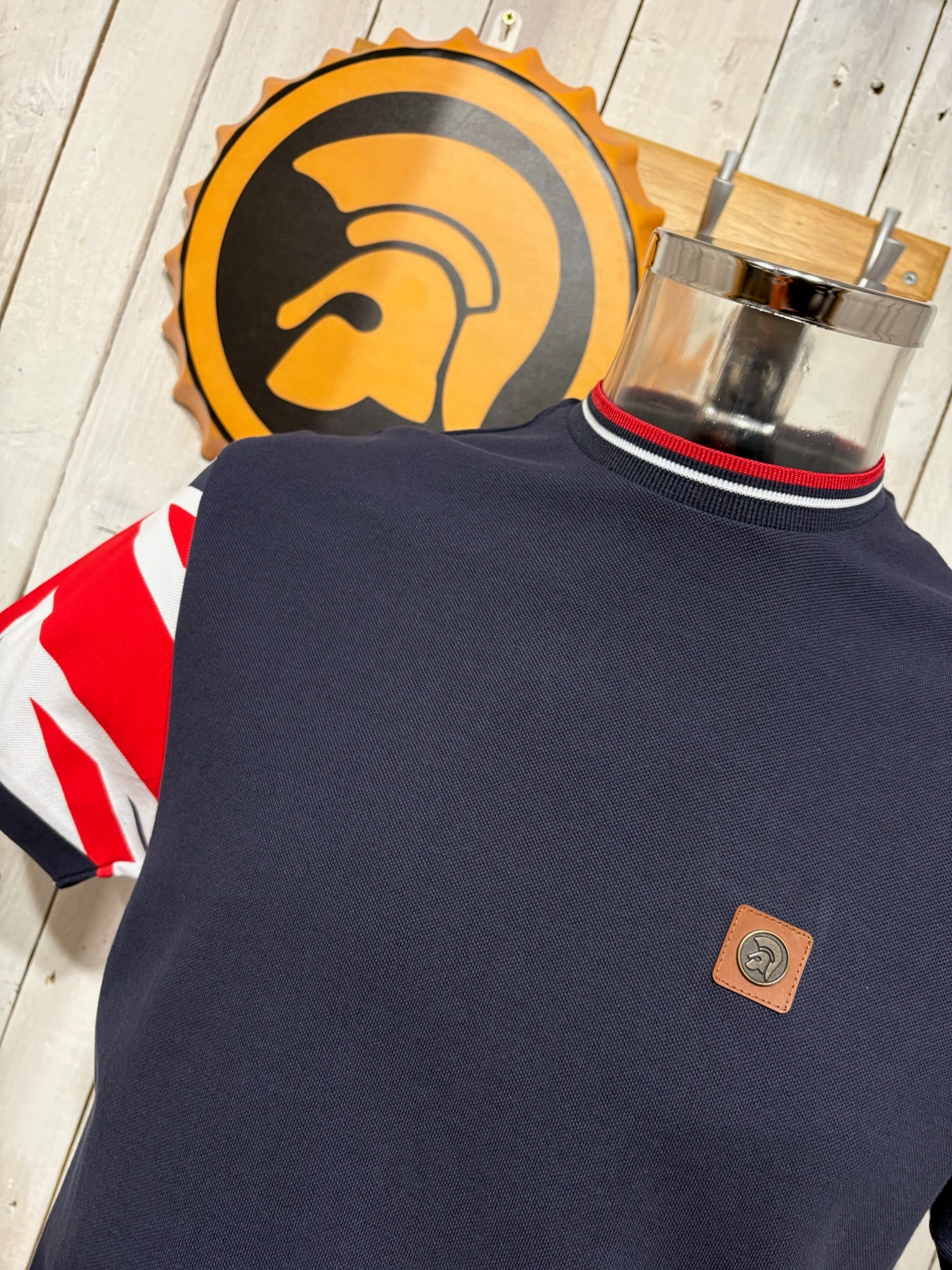 Trojan Sleeve Pique Ringer Tee - Navy