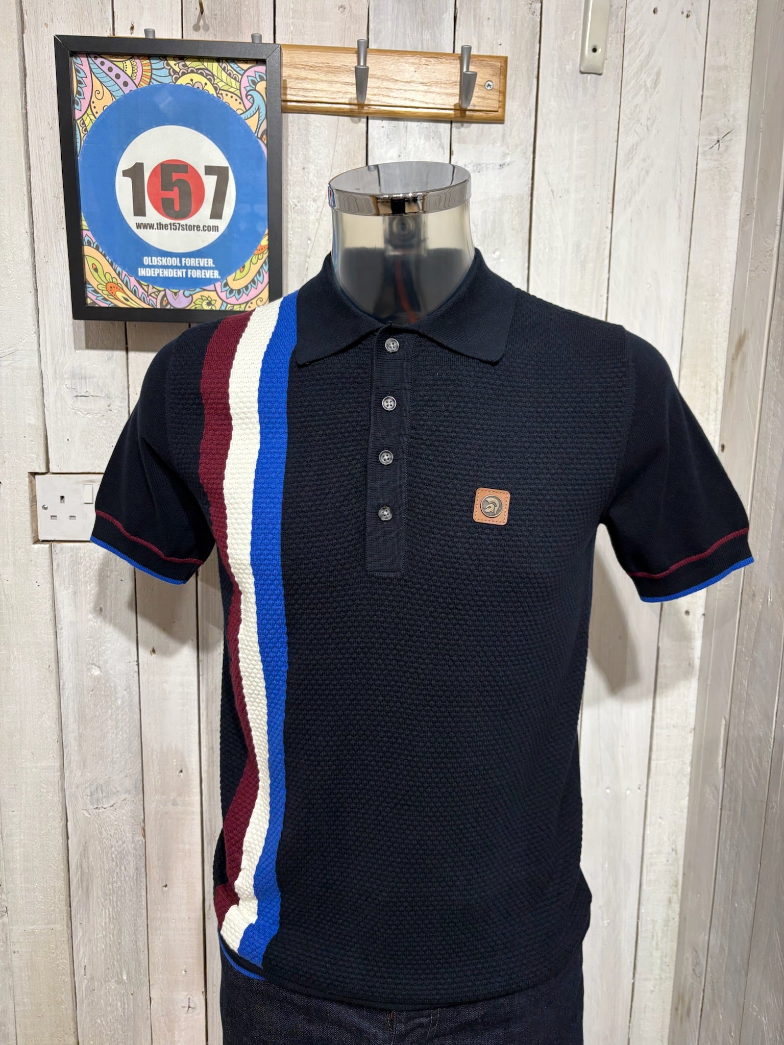 Trojan Waffle Racing Stripe Knit Polo - Navy