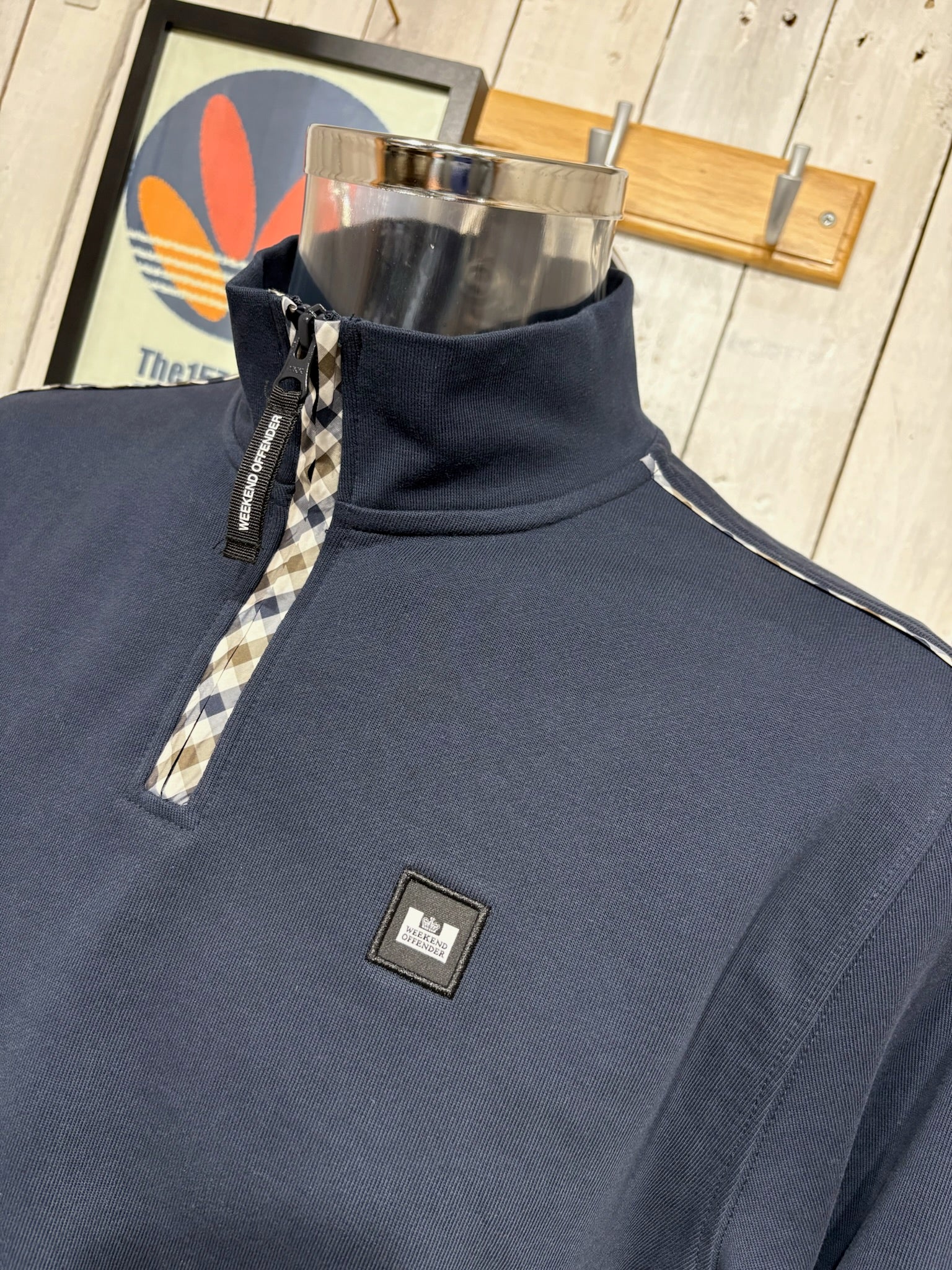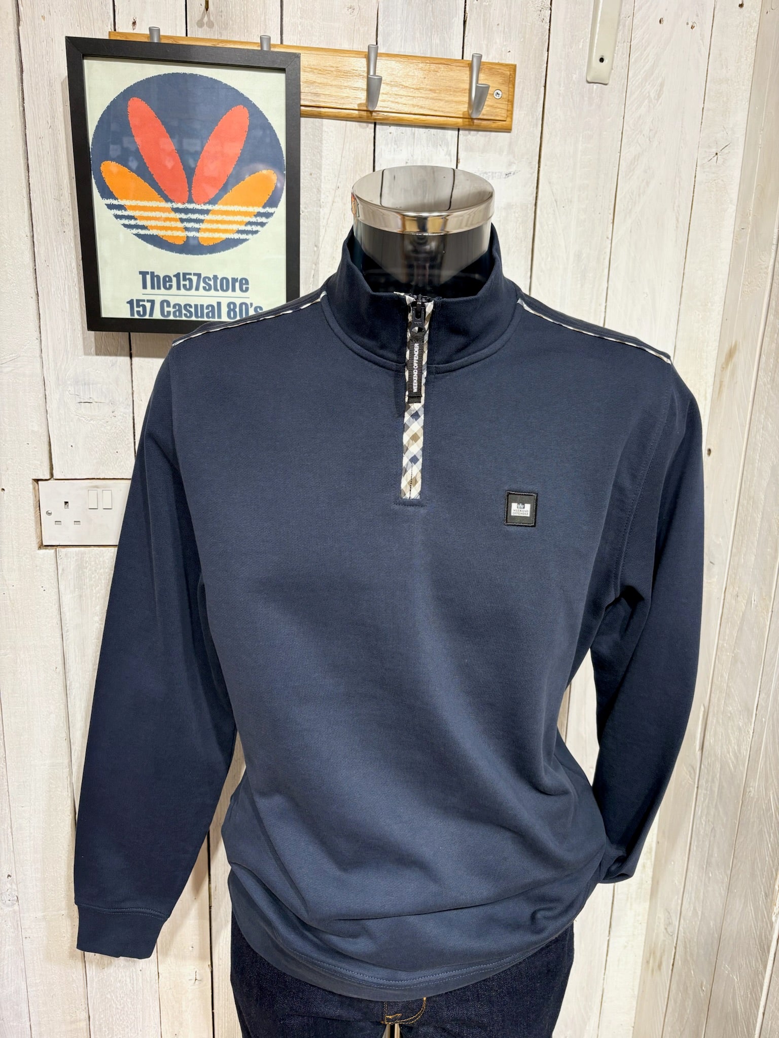 1/4 zip Sweatshirt with mid check piping made from knitted 100% combed Cotton 370gsm brushback fleece with twisted yarn construction to create a substantial feel on the outer surface and a soft, fleecy feel to the reverse.
